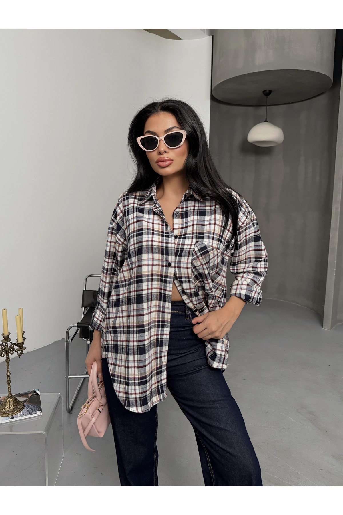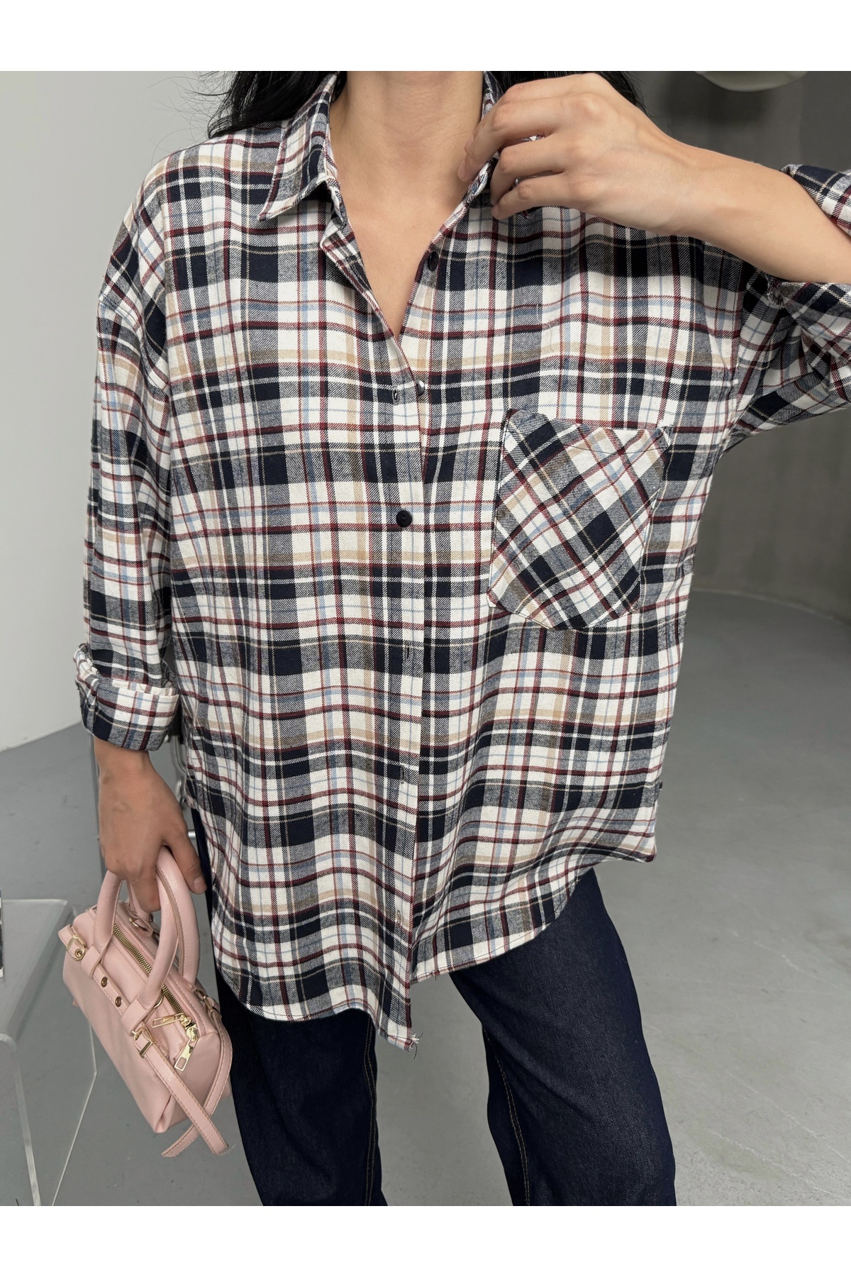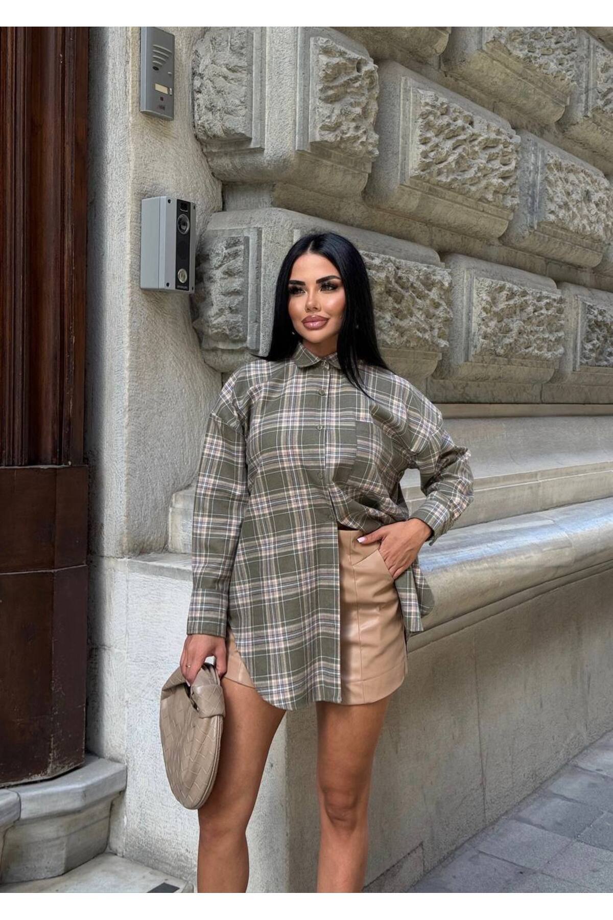 Kadın Salaş Ekose Kaşe Gömlek Kadın Salaş Ekose Kaşe Gömlek Laluna1118KGV L