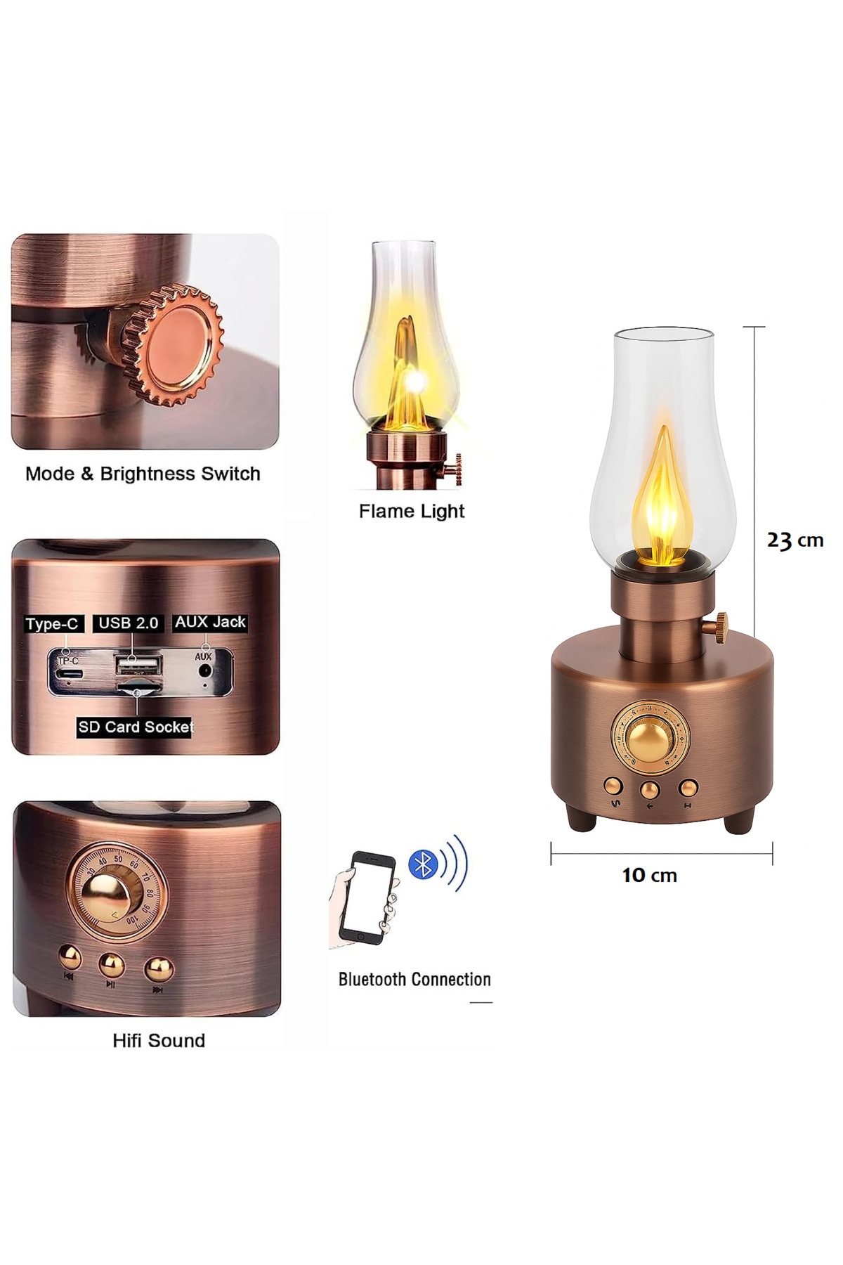 Bluetooth Hoparlör Dekoratif Gaz Lambası Retro Gece Lambası Romantik Mum Işıklı TypeC Şarjlı 5W Bluetooth Hoparlör Dekoratif Gaz Lambası Retro Gece Lambası Romantik Mum Işıklı TypeC Şarjlı 5W 210GL تک سایز