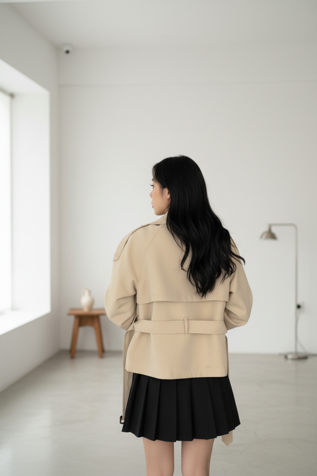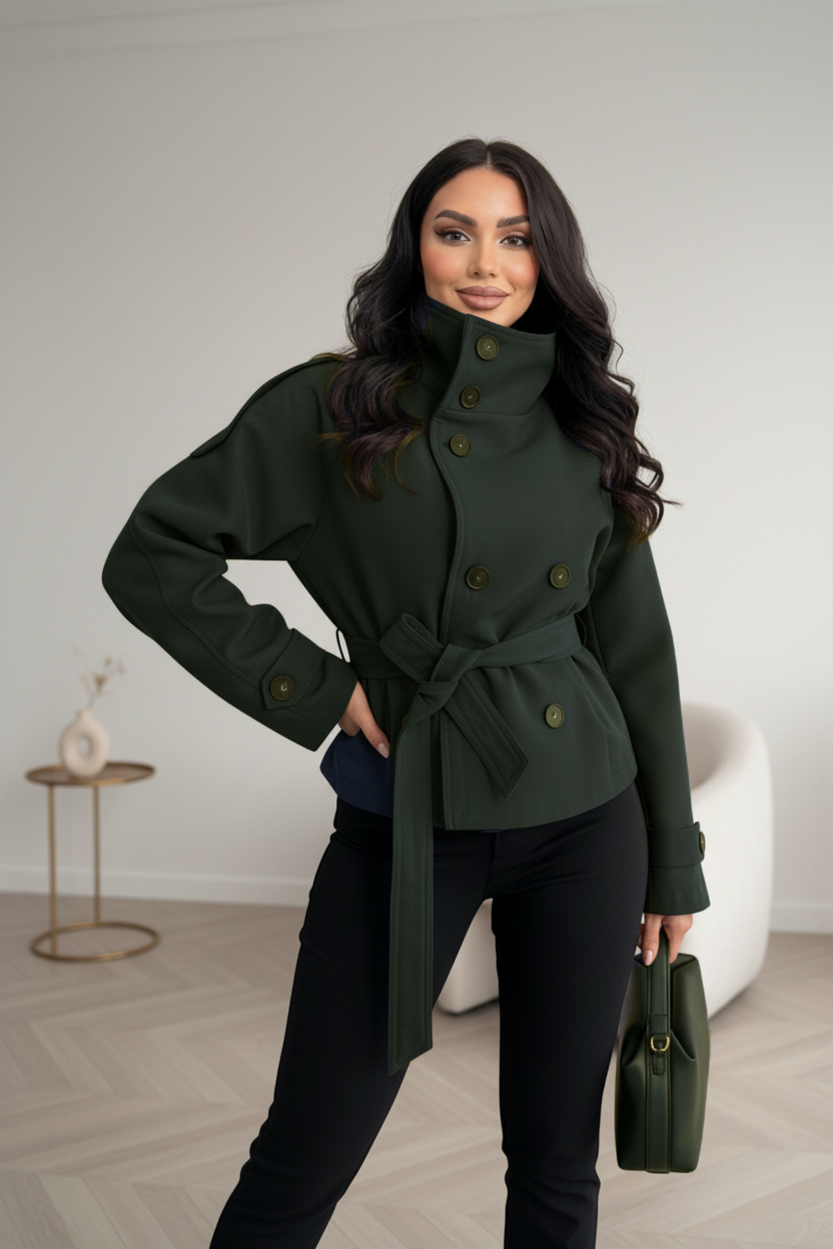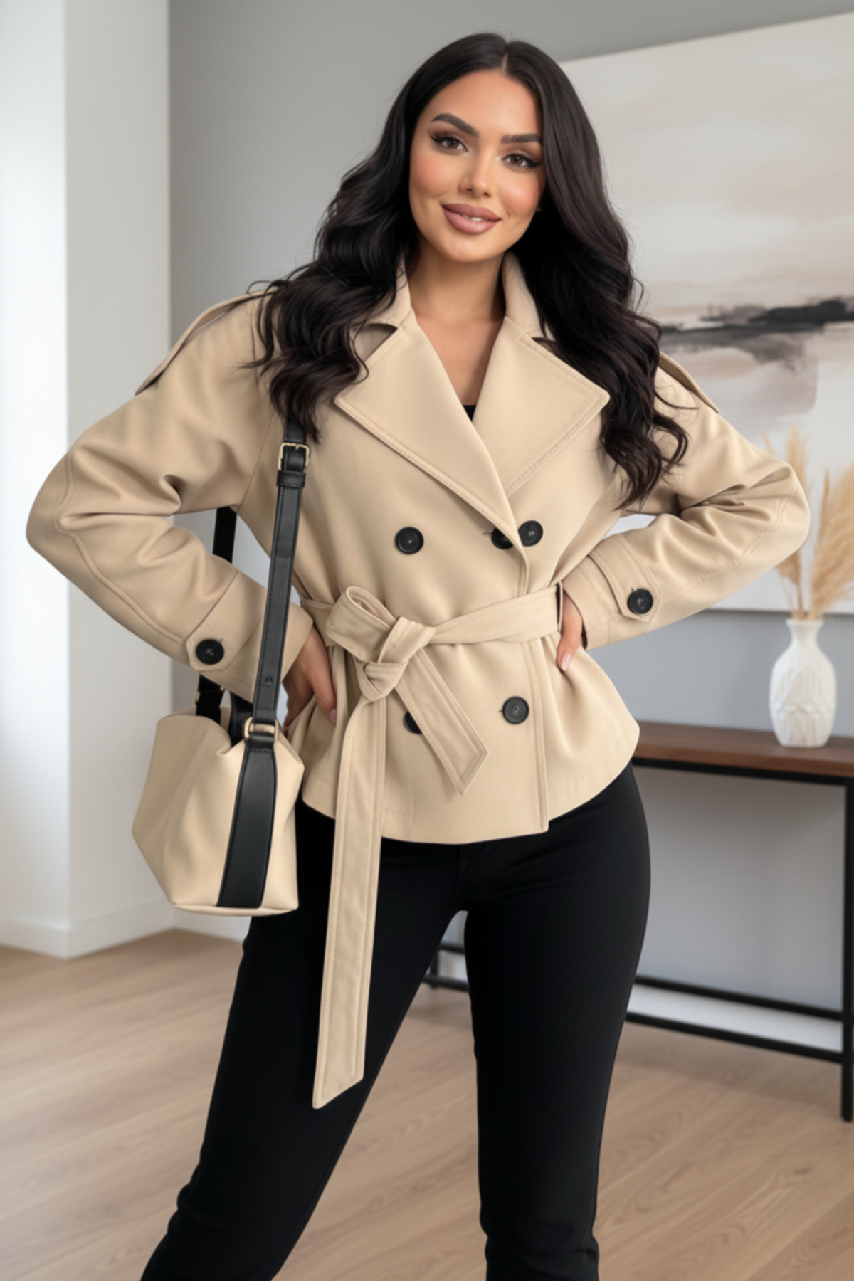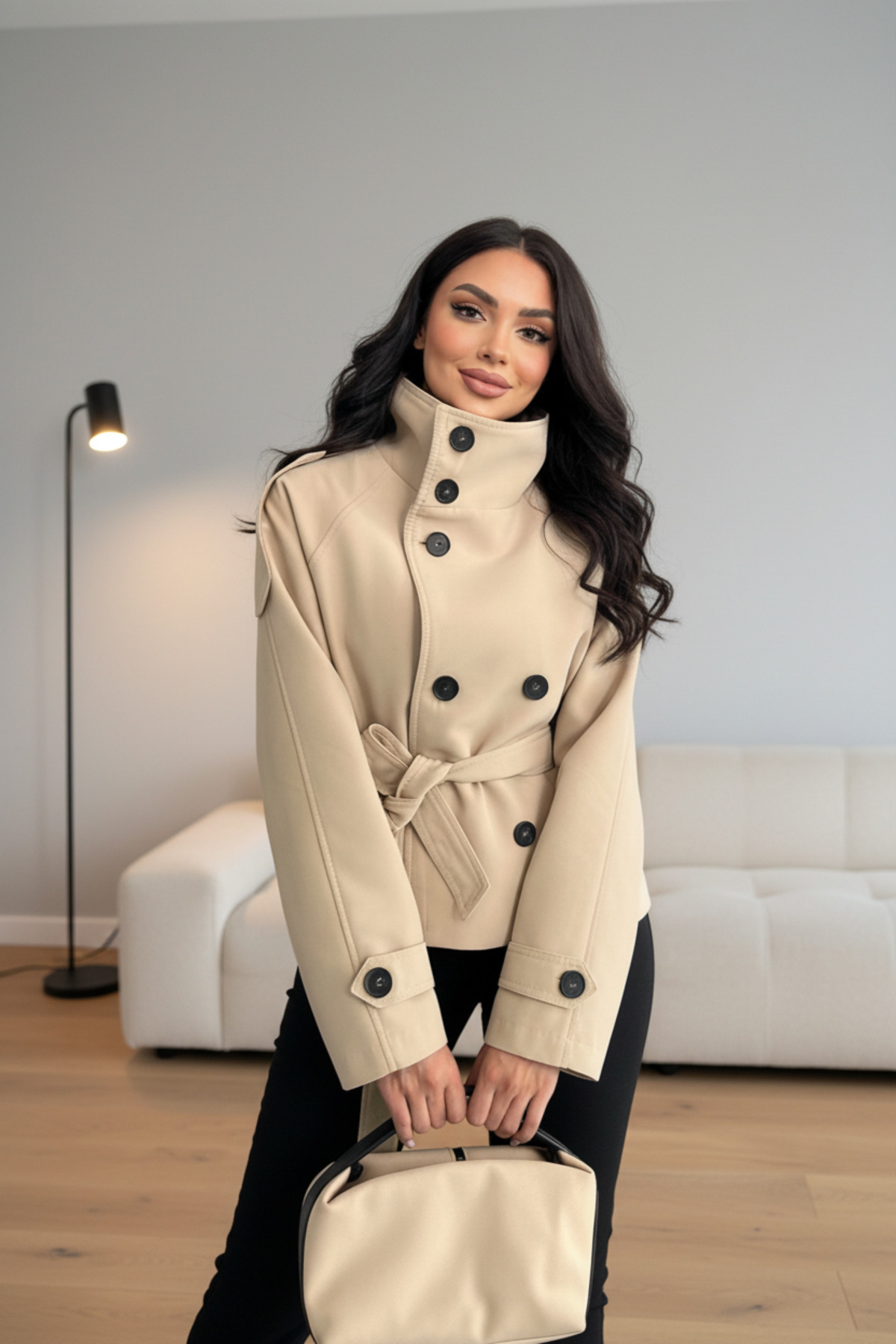 BSK DİK YAKA KISA TRENÇKOT CEKET BSK DİK YAKA KISA TRENÇKOT CEKET AMC-9043Y L