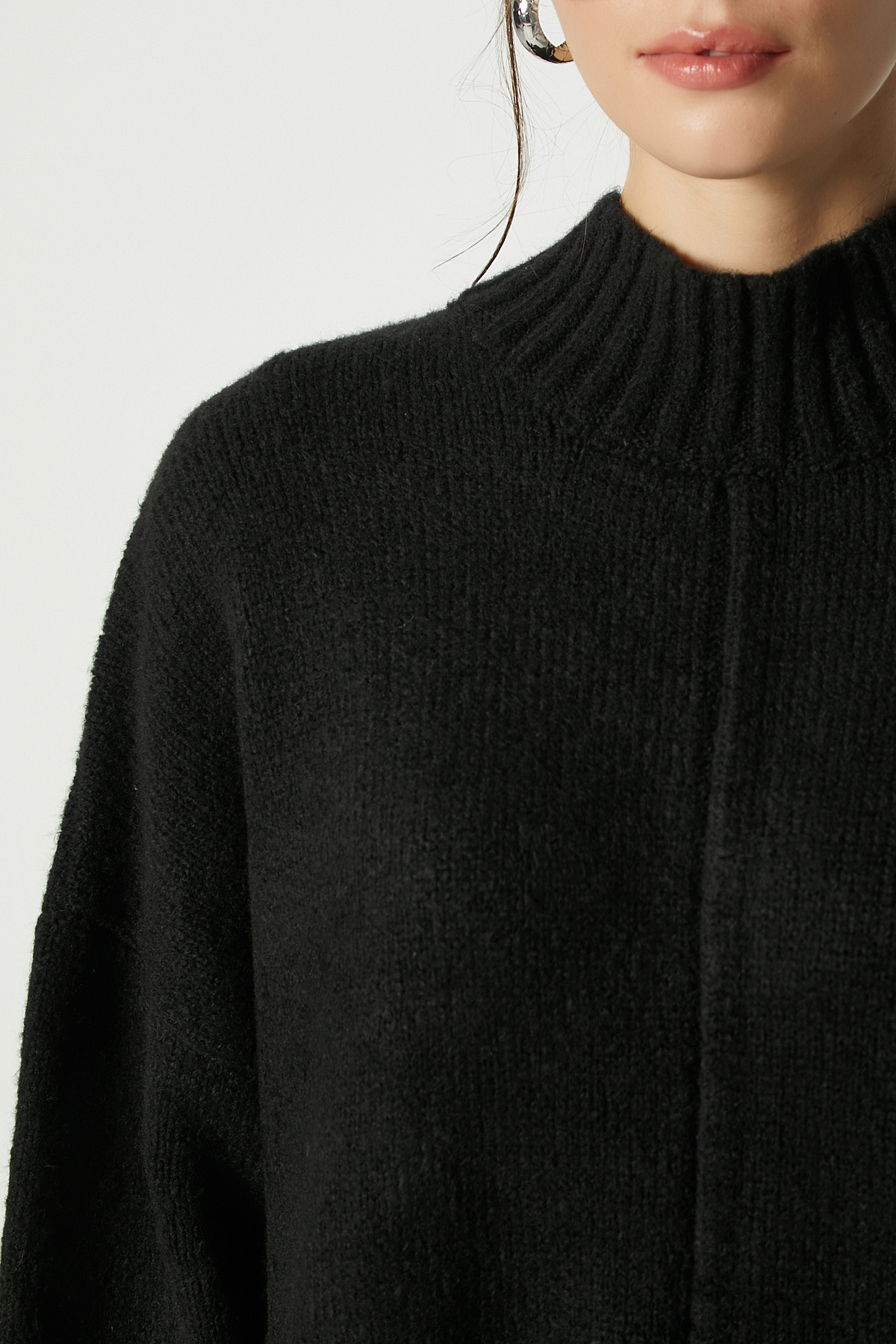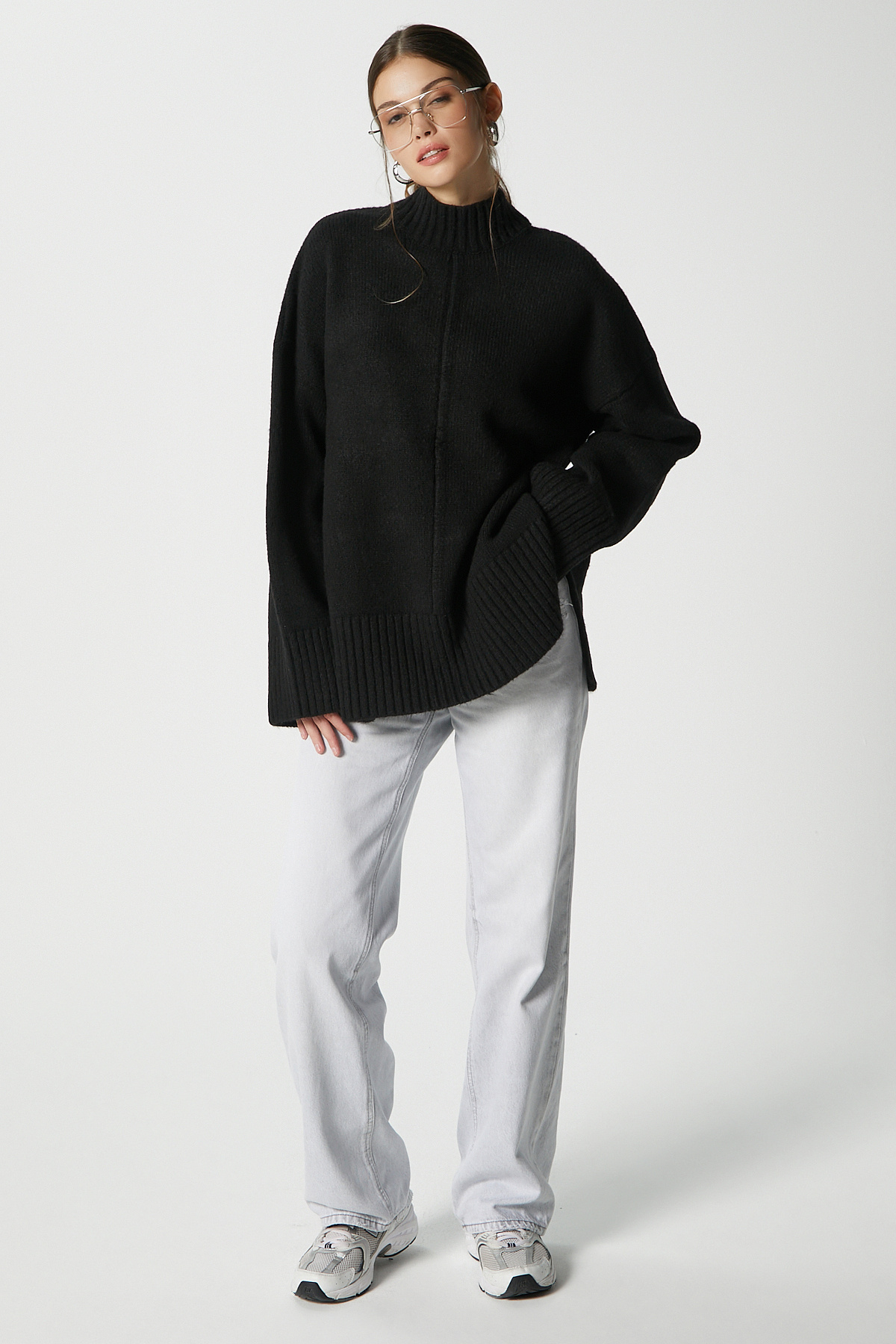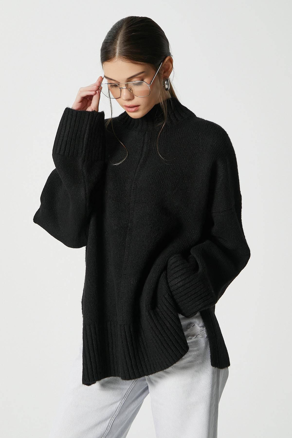 Kadın Wonder Yumuşacık Dik Yaka Siyah Yırtmaçlı Oversize Triko Kazak Kadın Wonder Yumuşacık Dik Yaka Siyah Yırtmaçlı Oversize Triko Kazak 1618 L