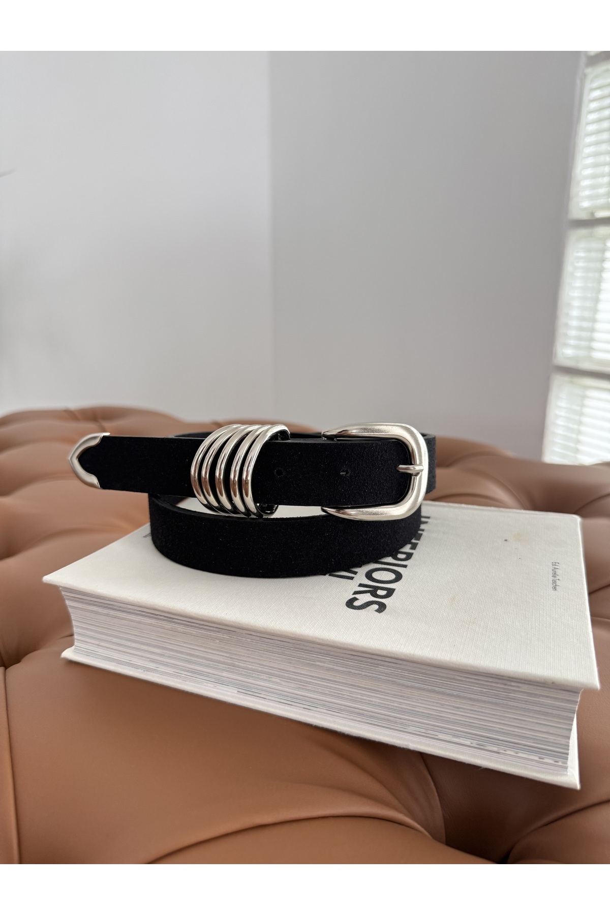Kadın Süet 5 Köprülü Silver Toka Siyah Kemer Kadın Süet 5 Köprülü Silver Toka Siyah Kemer stylish-5 تک سایز