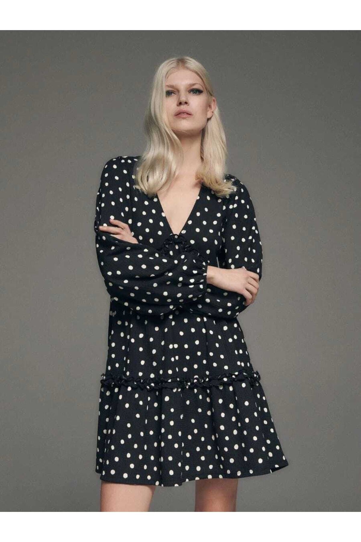 Kırmızı Puantiyeli Gömlek Elbise Kırmızı Puantiyeli Gömlek Elbise 100080 L