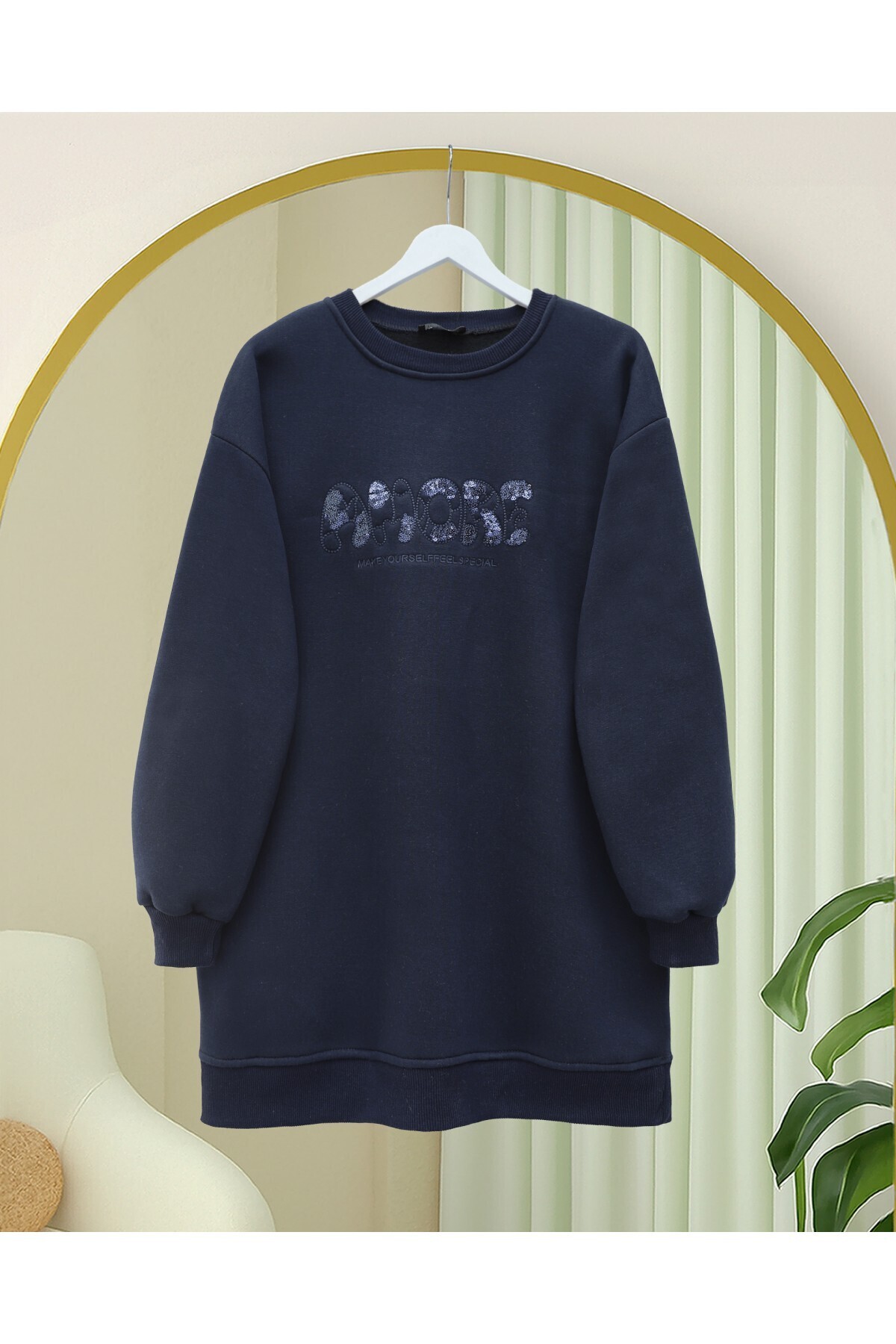 Önü Pul Payet Detaylı Yazılı Üç İplik Sweat -Siyah Önü Pul Payet Detaylı Yazılı Üç İplik Sweat -Siyah TY349-5279 XL
