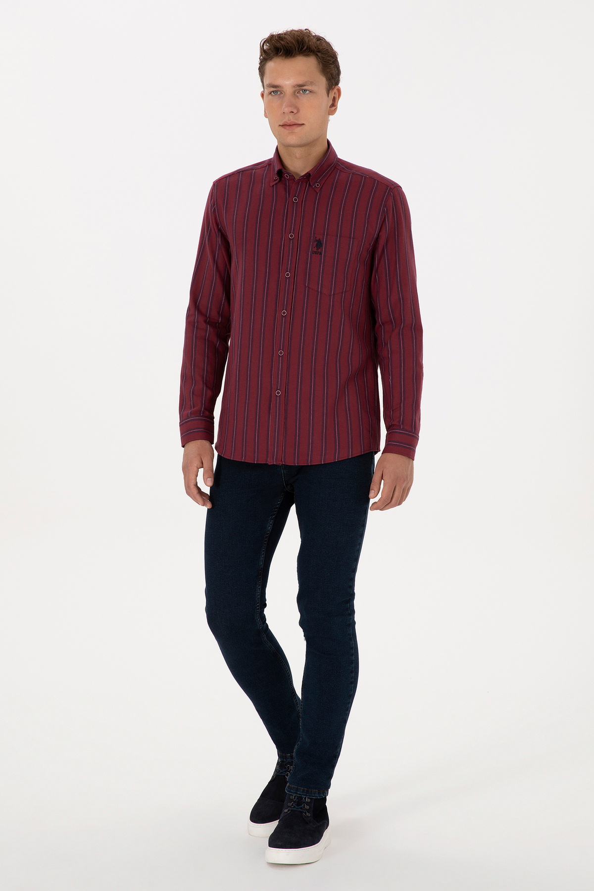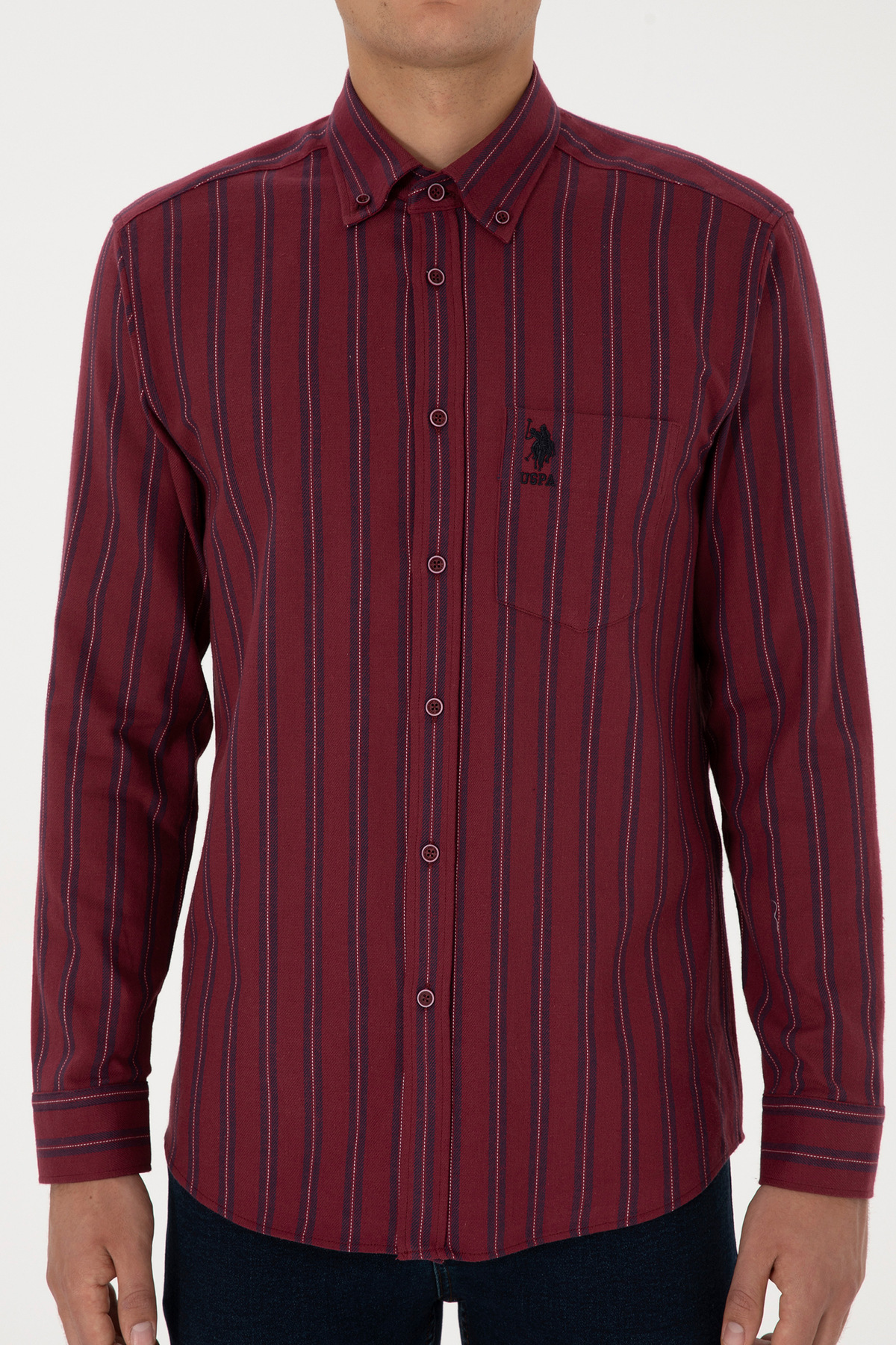 Erkek Bordo Uzun Kollu Siyah Çizgili Gömlek 50308505-VR014 Erkek Bordo Uzun Kollu Siyah Çizgili Gömlek 50308505-VR014 5XL