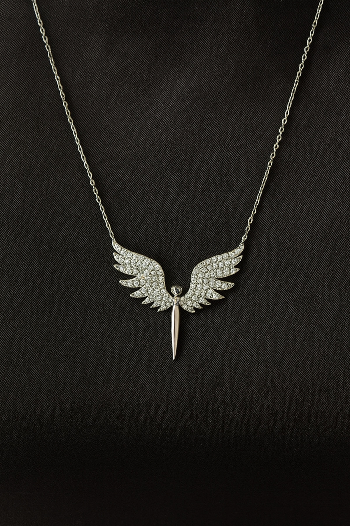Gümüş Renk Mikail Meleği Kanatlı Beyaz Taşlı Zirkon Çelik Kolye Gümüş Renk Mikail Meleği Kanatlı Beyaz Taşlı Zirkon Çelik Kolye FYLRN21 تک سایز