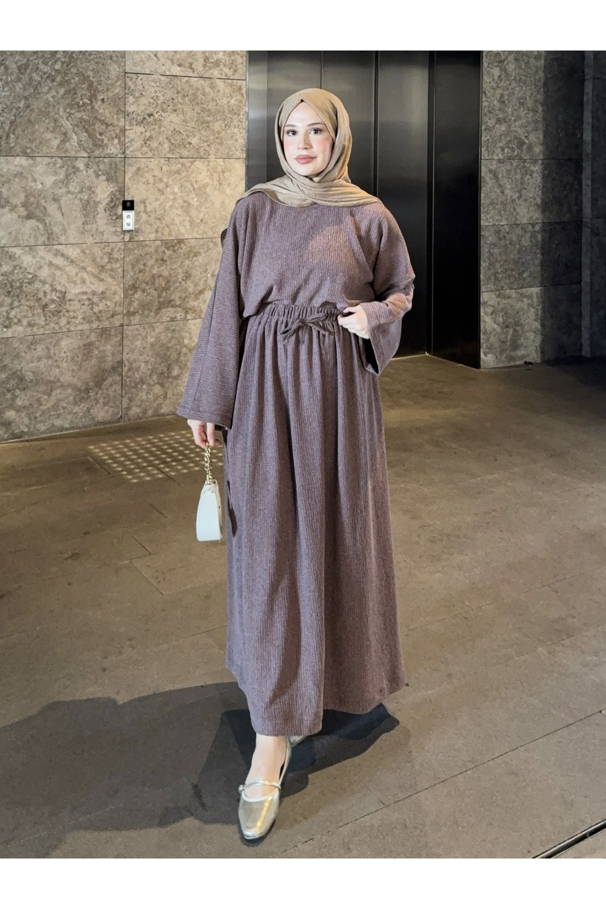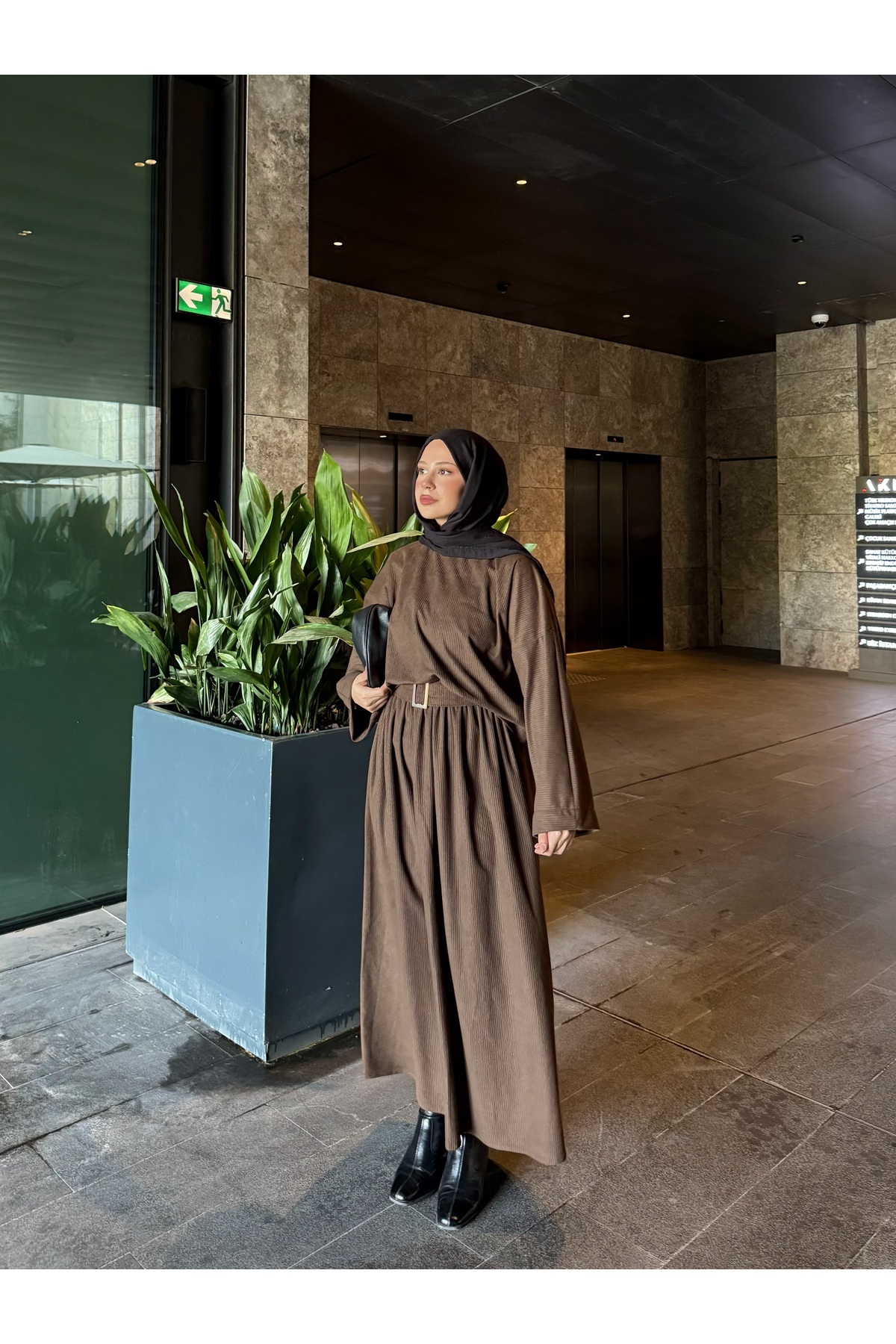 Kadın Kahverengi Kadife Etekli Takım Kadın Kahverengi Kadife Etekli Takım KKT-01 40-42