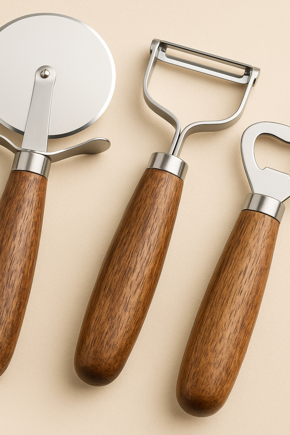 Akasya Saplı Paslanmaz 3’lü Mutfak Gereç Seti – Pizza Kesici, Soyacak, Şişe Açacağı Akasya Saplı Paslanmaz 3’lü Mutfak Gereç Seti – Pizza Kesici, Soyacak, Şişe Açacağı T090498KHAN4013 تک سایز