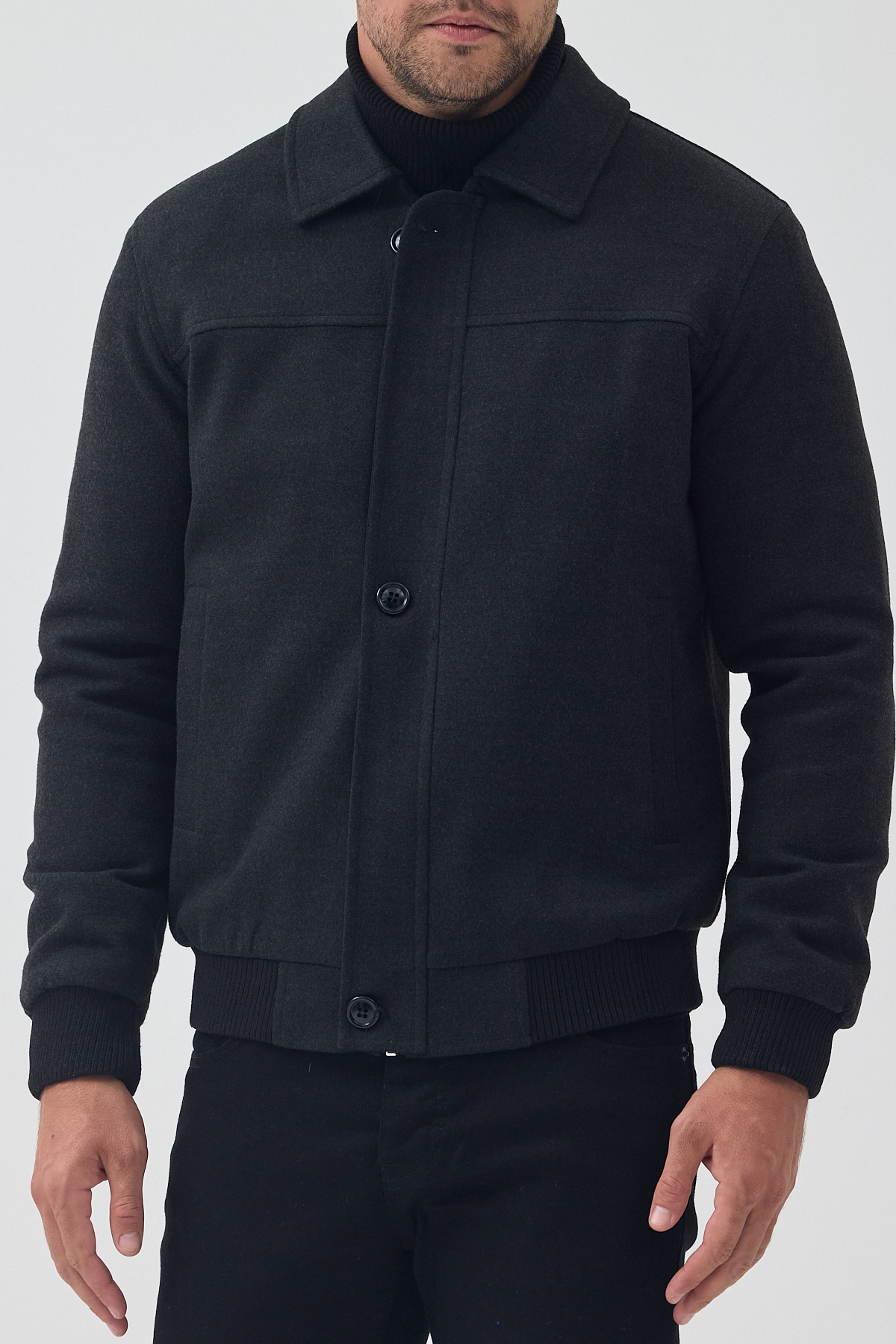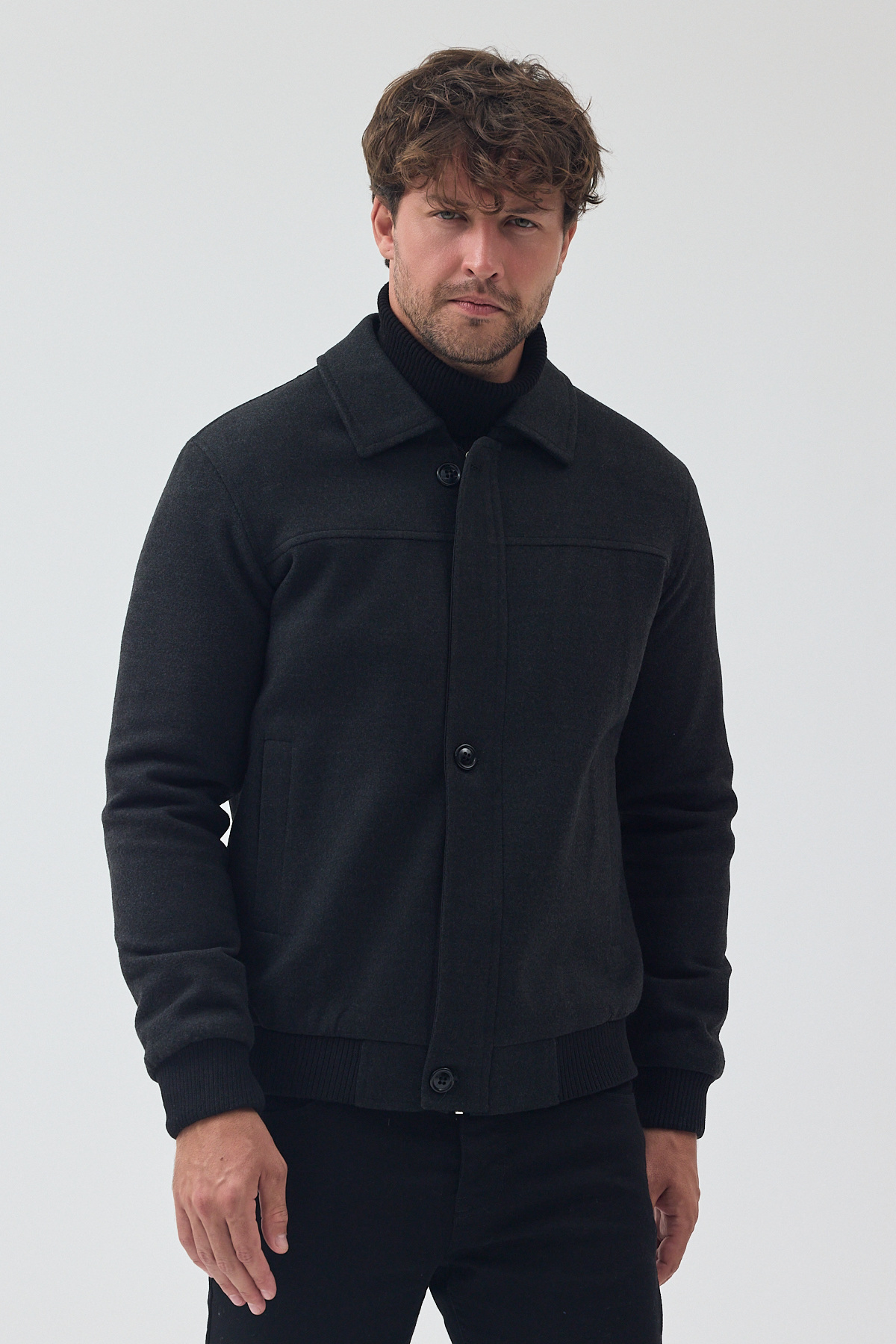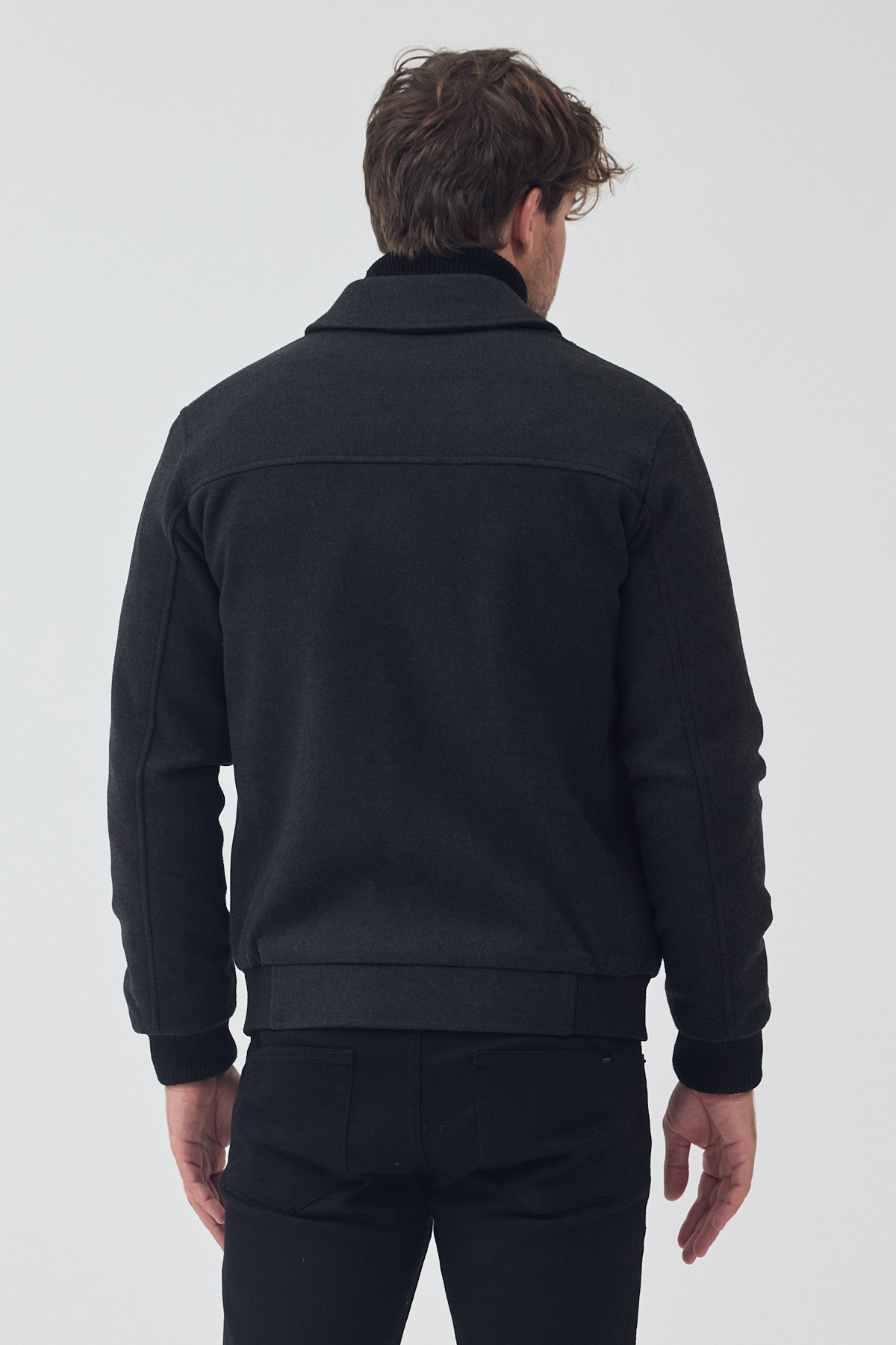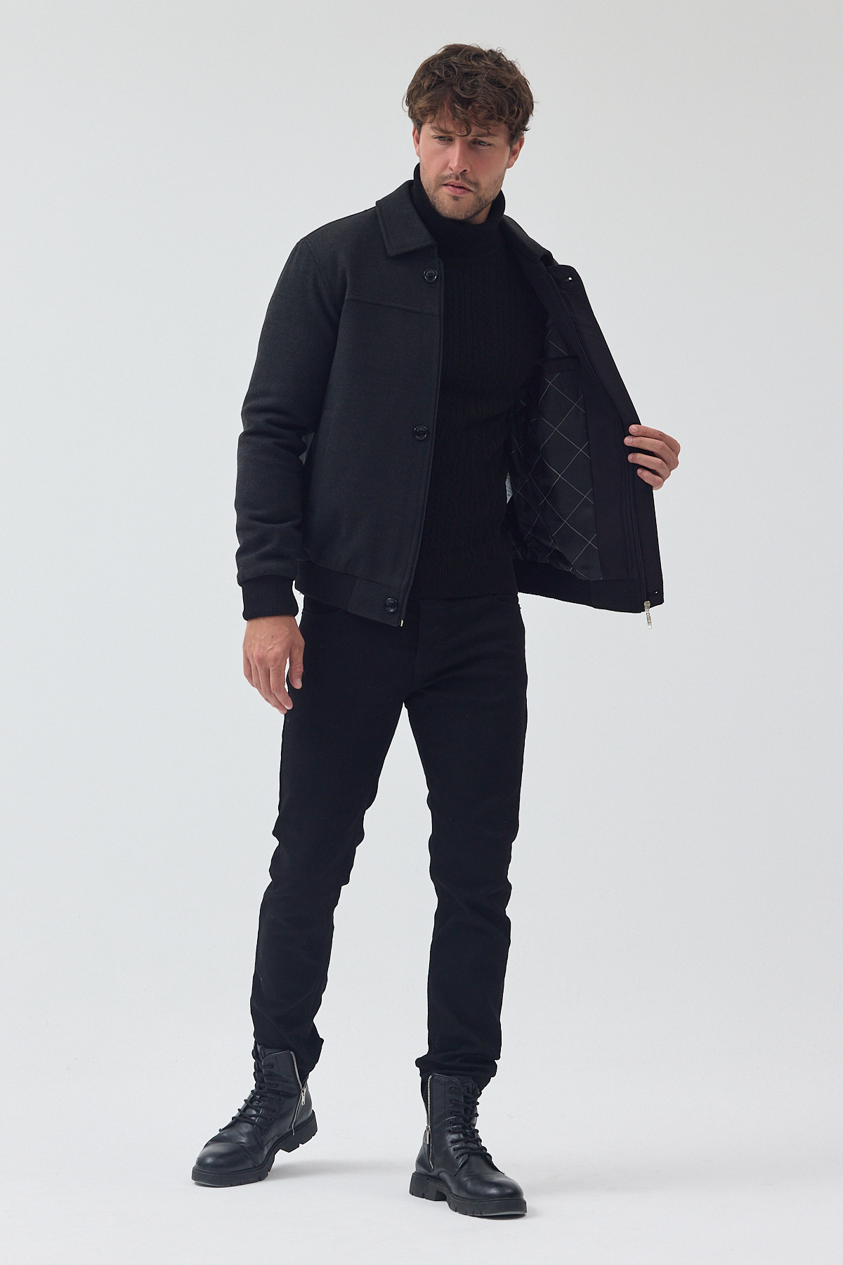 Erkek Antrasit Renk Standart Kalıp Fermuarlı Kapitone Kaşe Kaban Erkek Antrasit Renk Standart Kalıp Fermuarlı Kapitone Kaşe Kaban 266 2XL