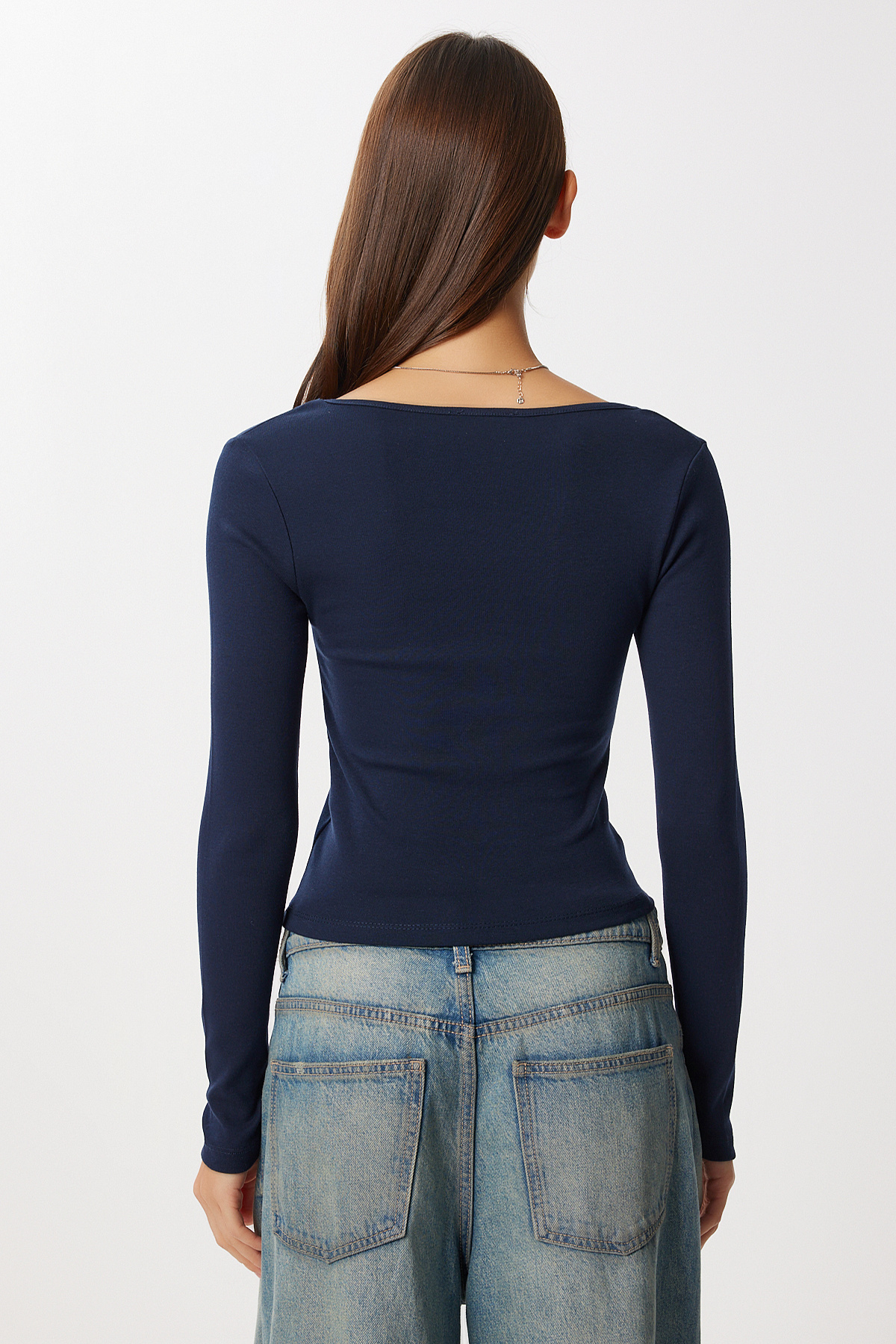 Uzun Kollu V Yaka Örme Bluz LUB0293 LACİVERT Uzun Kollu V Yaka Örme Bluz LUB0293 LACİVERT 40