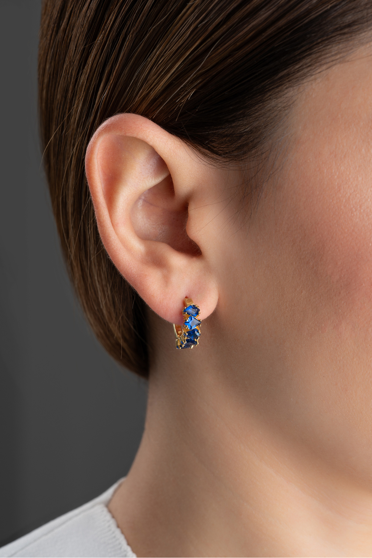 925 Ayar Gümüş Safir Baget Taşlı Halka Küpe 925 Ayar Gümüş Safir Baget Taşlı Halka Küpe DL6017-Famira تک سایز