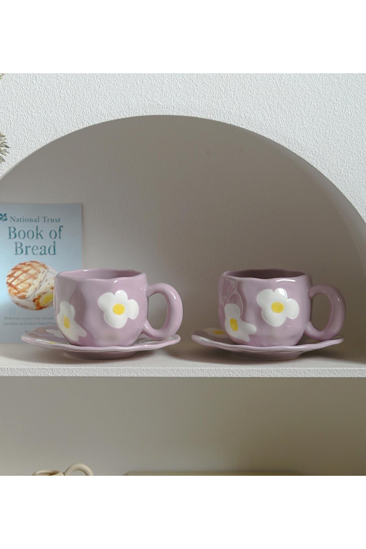 Mor Papatya Desenli Seramik Kupa & Tabak Seti Mor Papatya Desenli Seramik Kupa & Tabak Seti BM-2002 تک سایز
