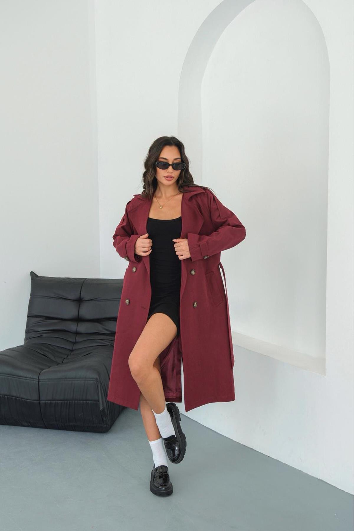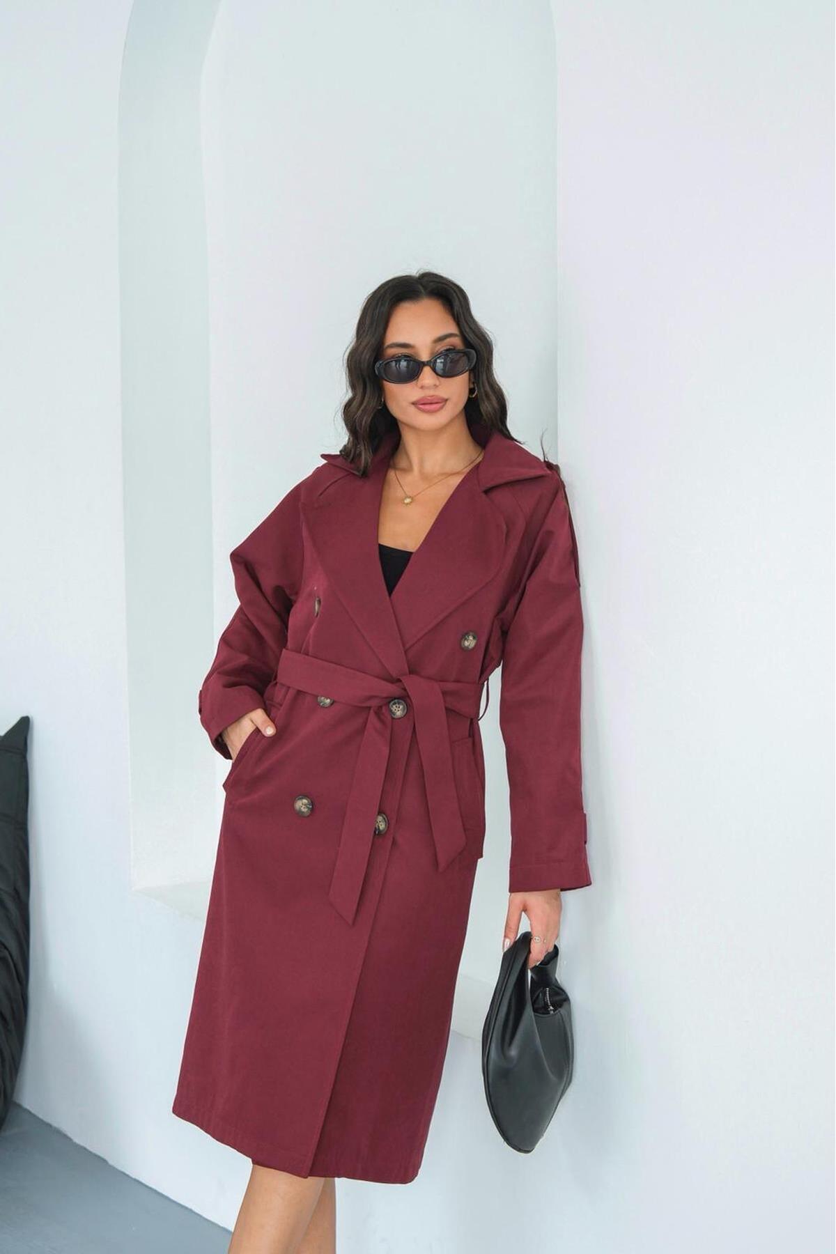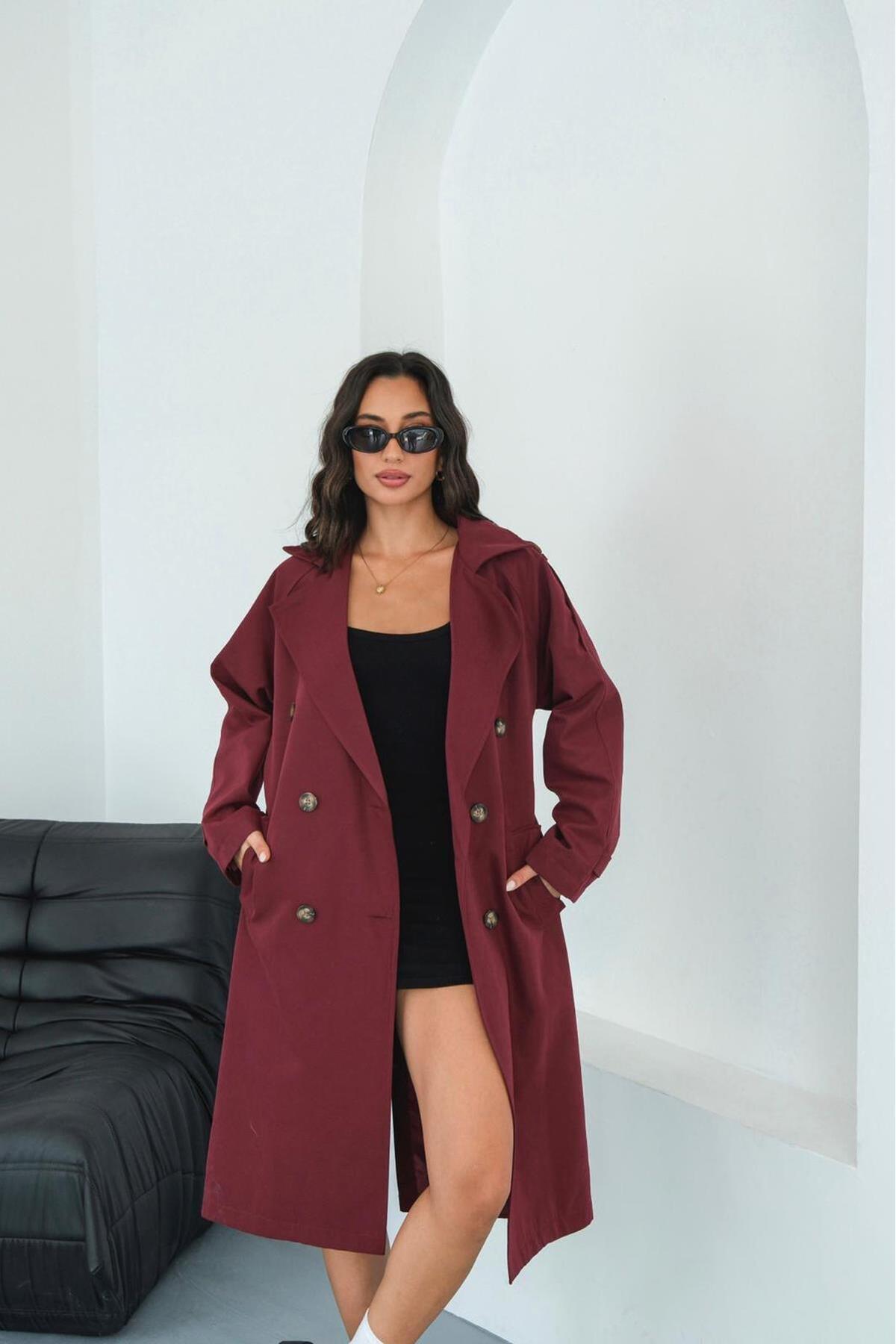 Astarlı kemer Detaylı Bordo Rengi Trenç Kaban MLB079 Astarlı kemer Detaylı Bordo Rengi Trenç Kaban MLB079 L