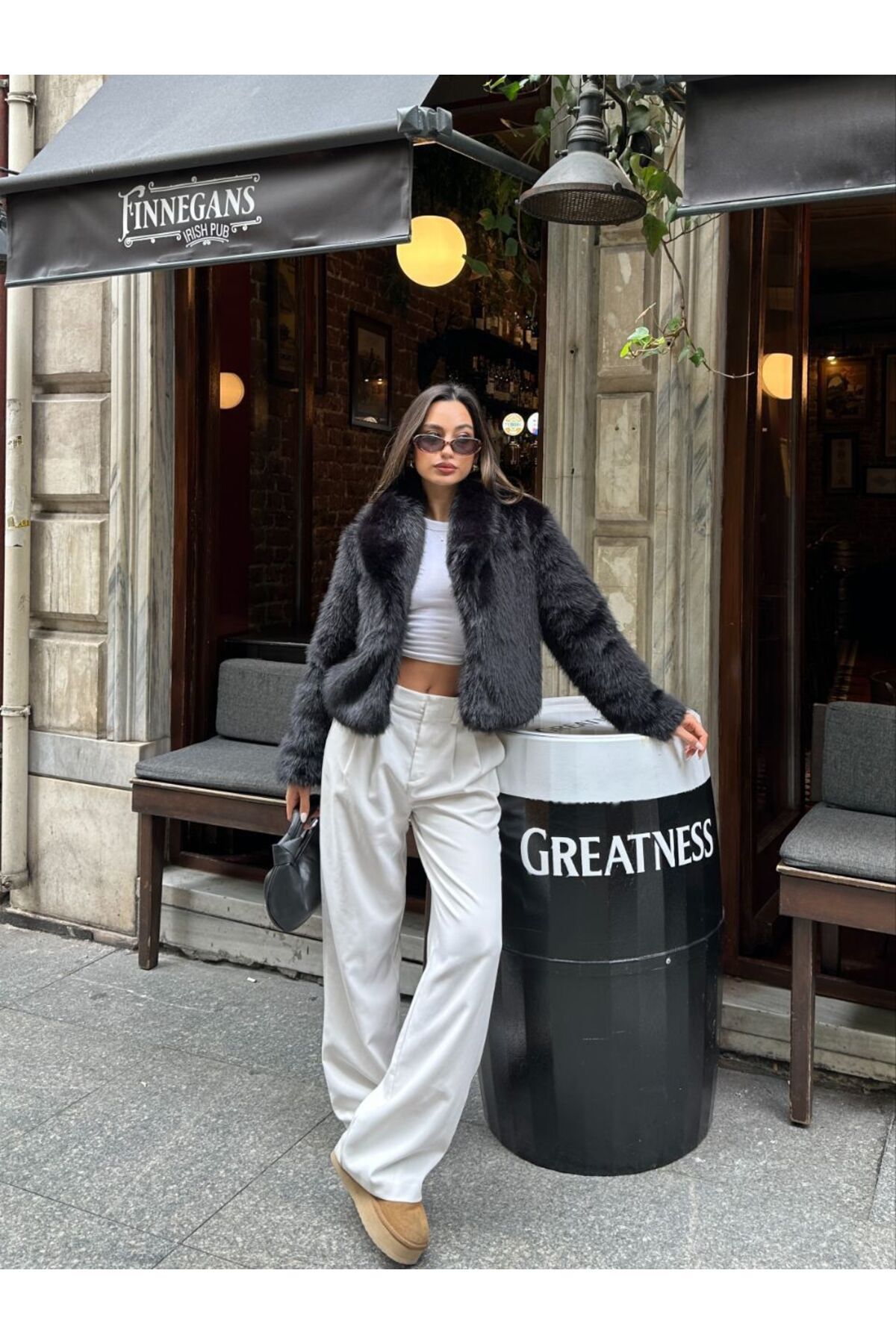 Kadın Premium Astarlı Yakalı Suni Kürk Kadın Premium Astarlı Yakalı Suni Kürk krk1 L