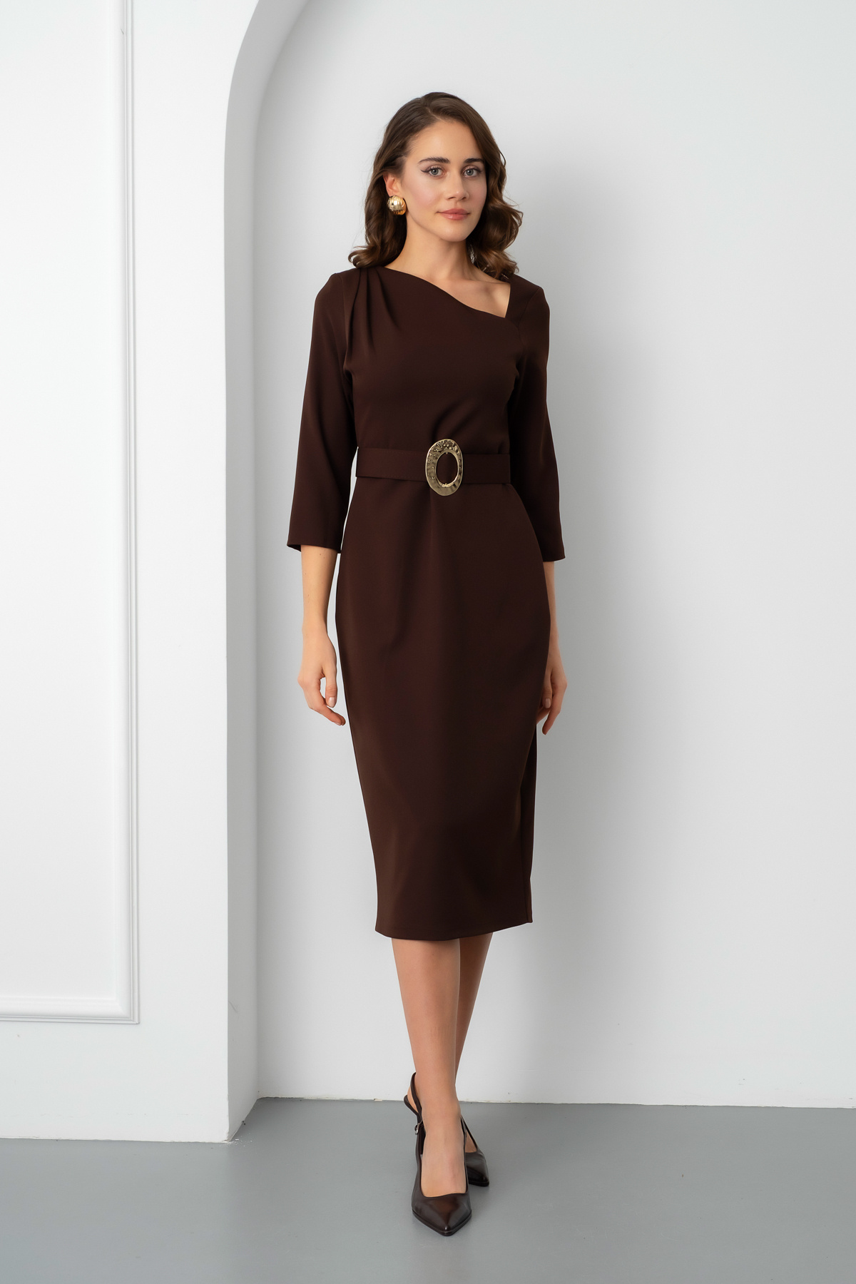 Kadın Siyah Aksesuar Detay Midi Elbise Kadın Siyah Aksesuar Detay Midi Elbise 25K307063 50