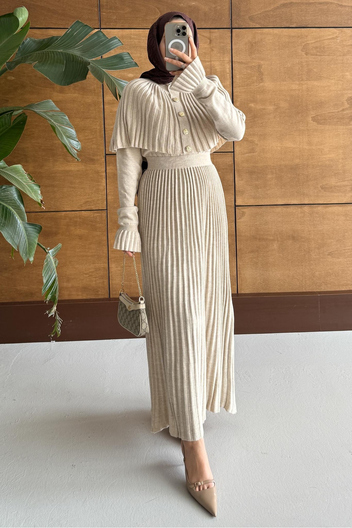 Kelebek Piliseli Elbise Takım Bej Kelebek Piliseli Elbise Takım Bej 8699879784508 Standart
