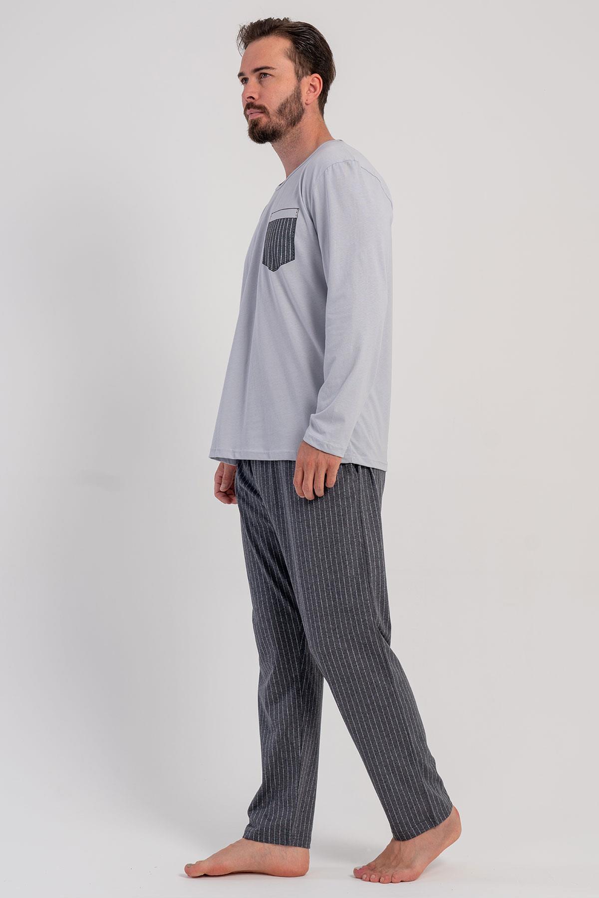 Erkek Gri Renk Uzun Kollu Bisiklet Yaka Çizgili Alt Pijama Takımı C9T9N0305 Erkek Gri Renk Uzun Kollu Bisiklet Yaka Çizgili Alt Pijama Takımı C9T9N0305 329491 2XL