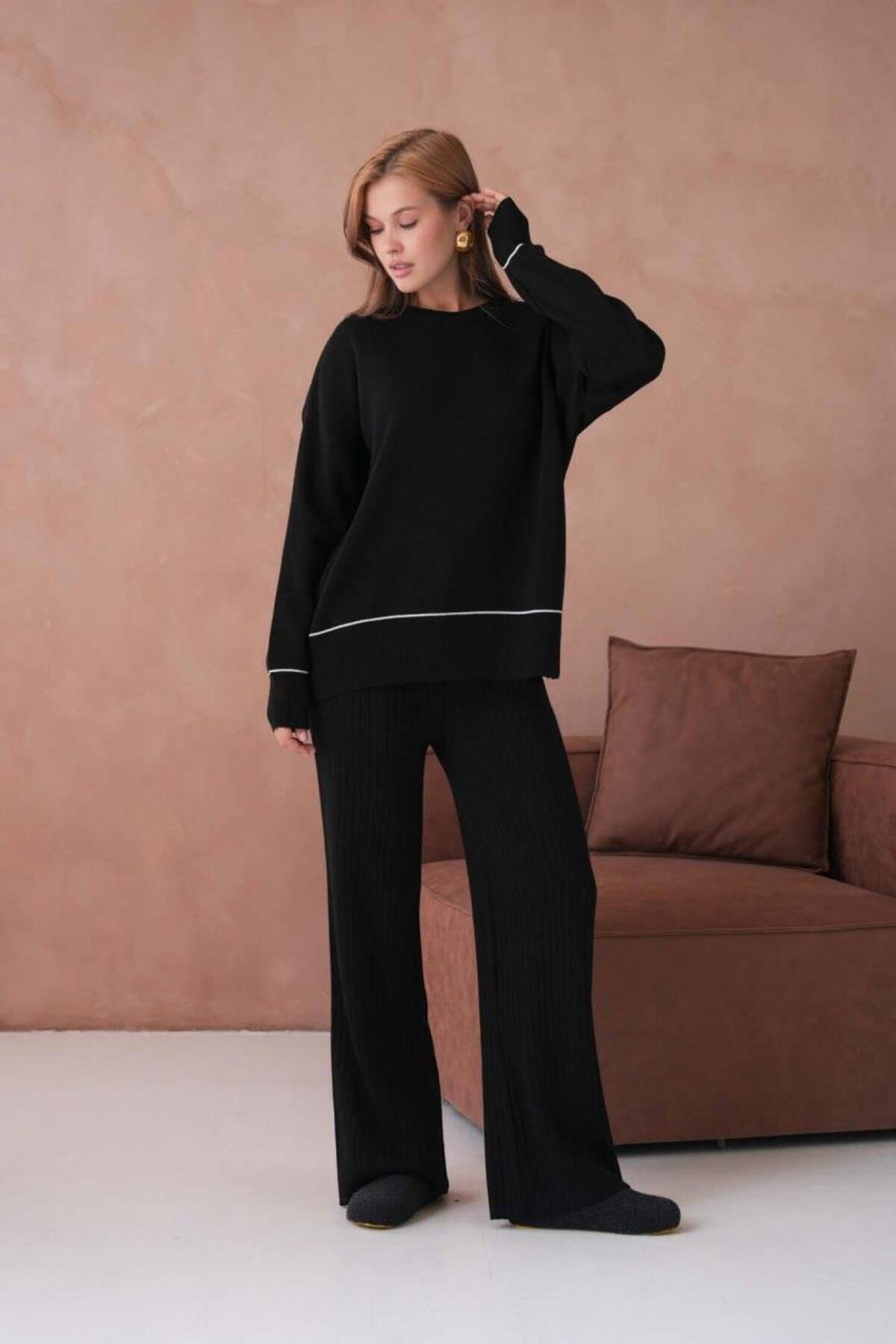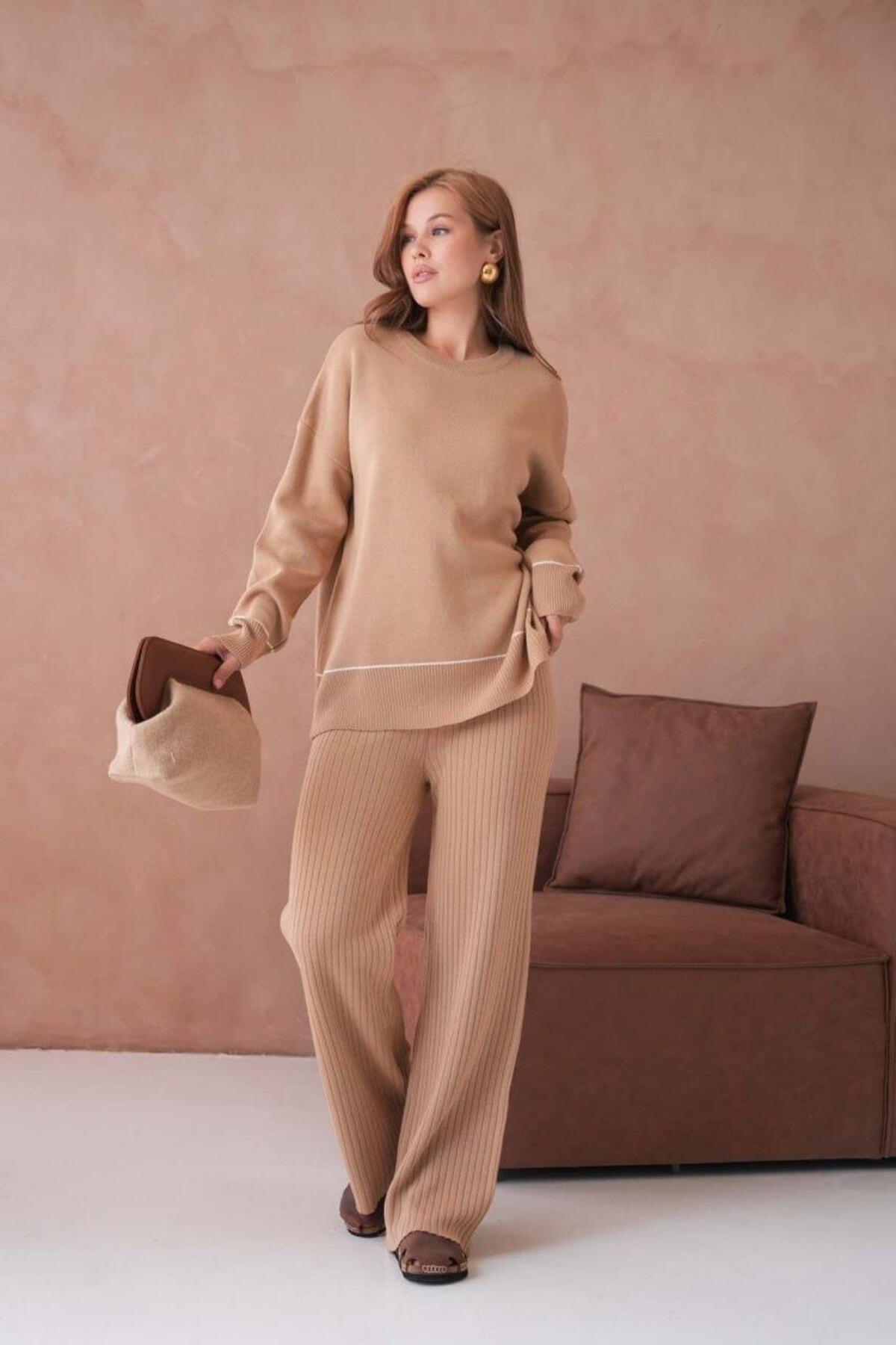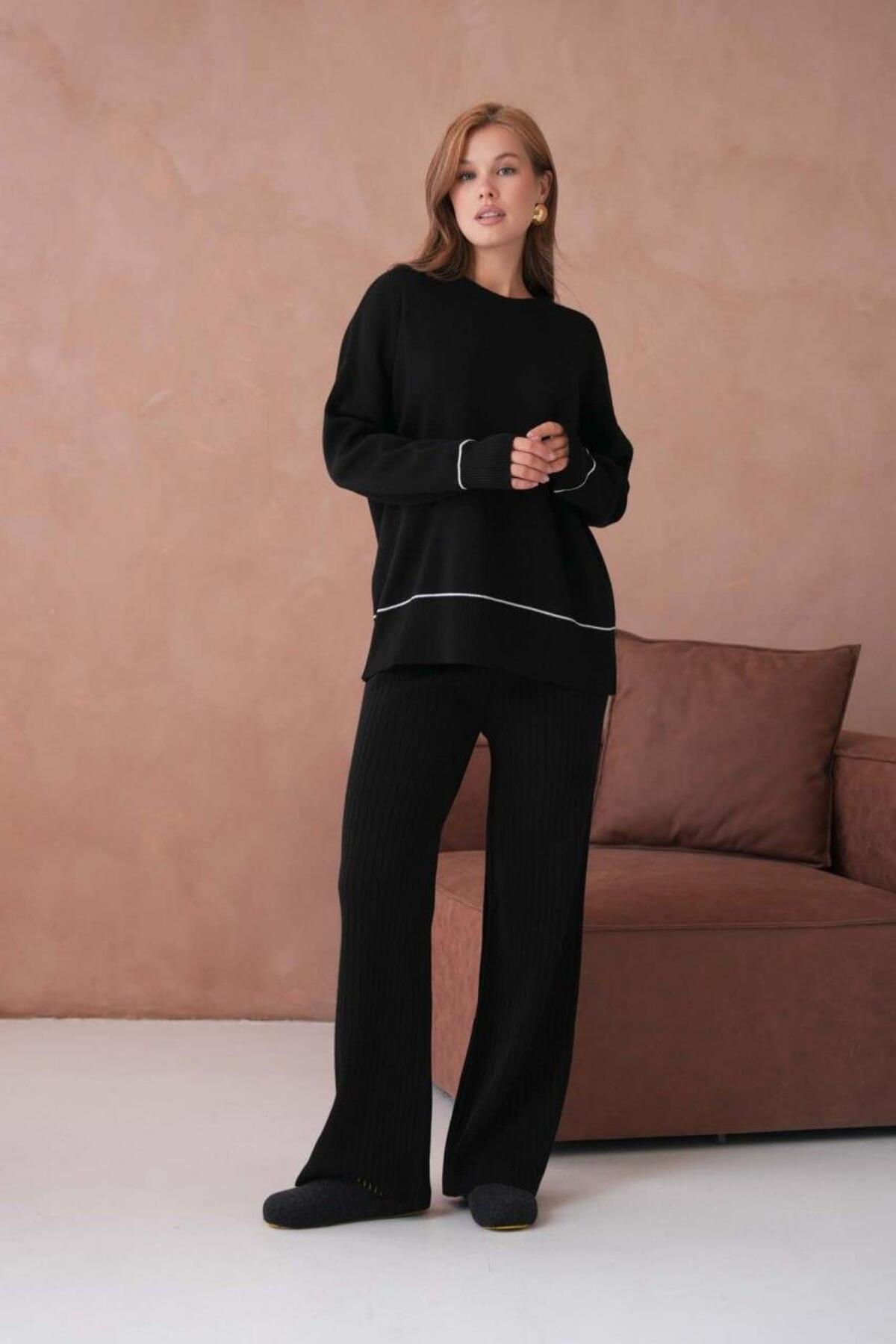 12231-Sfır Yaka Çizgi Uç Triko Pantolonlu Takım 12231-Sfır Yaka Çizgi Uç Triko Pantolonlu Takım ISSHDTKM012 42