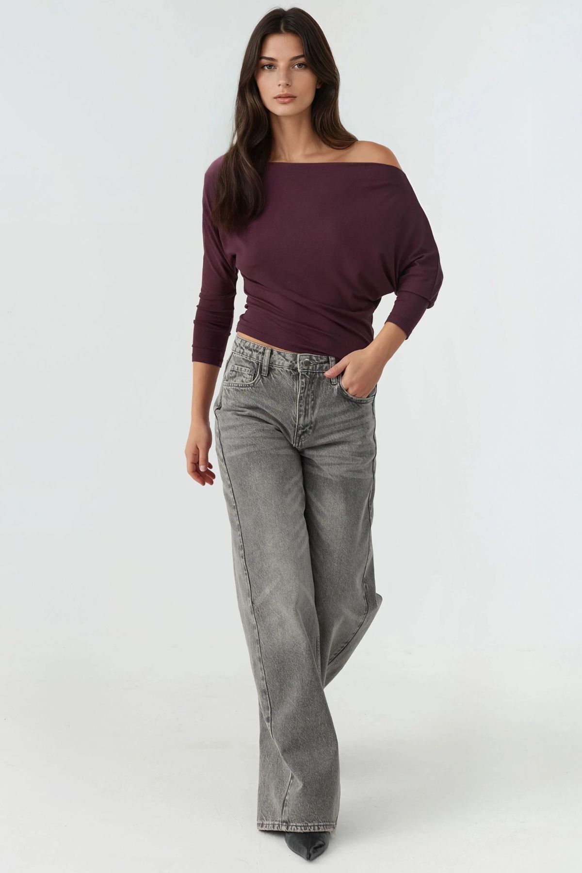 Asimetrik Yaka Uzun Kollu Esnek Örme Tişört Asimetrik Yaka Uzun Kollu Esnek Örme Tişört MG0XRRTH L