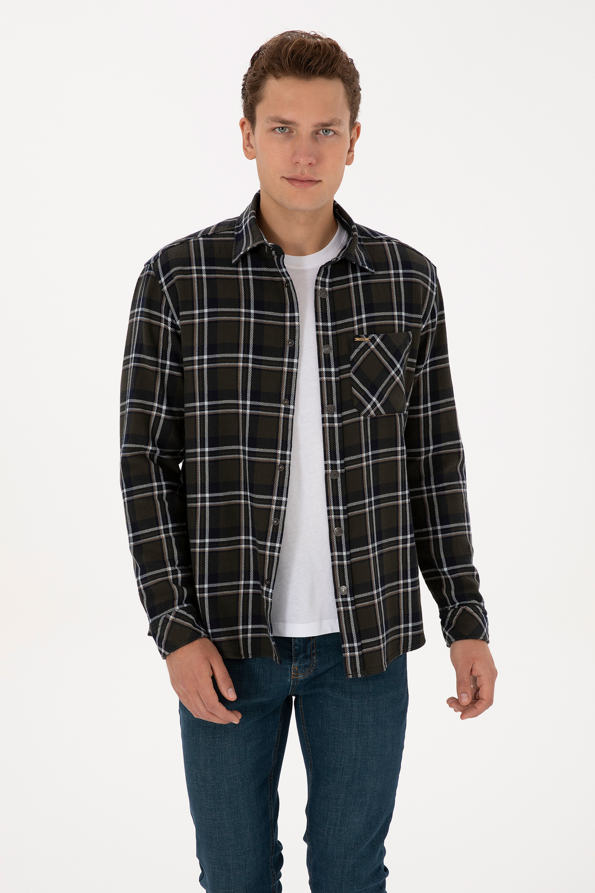 Erkek Koyu Yeşil Uzun Kollu Gömlek 50308503-VR079 Erkek Koyu Yeşil Uzun Kollu Gömlek 50308503-VR079 4XL