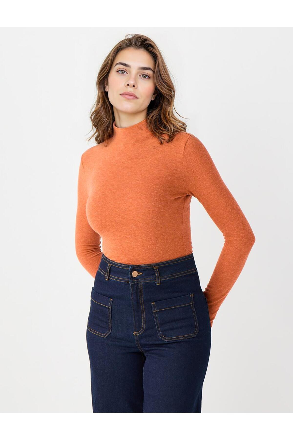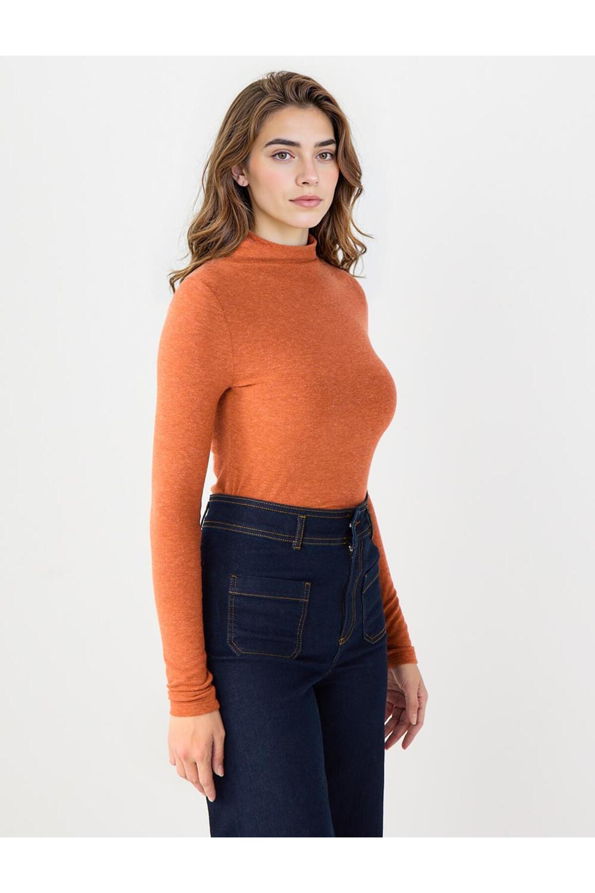 Kıremıt Yarım Balıkçı Yaka Dar Kesim Basic Örme Bluz Kıremıt Yarım Balıkçı Yaka Dar Kesim Basic Örme Bluz 5WW036083 XL
