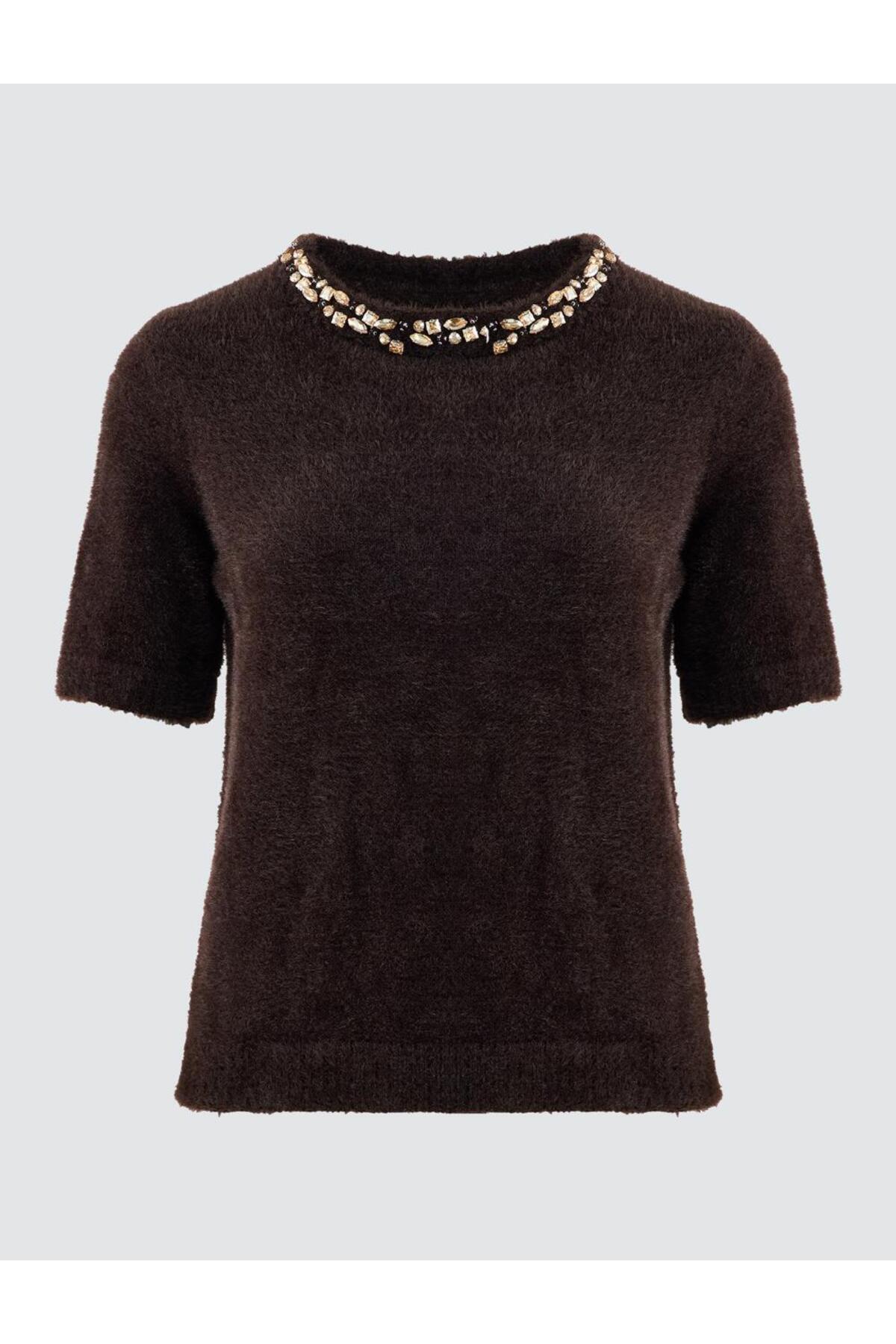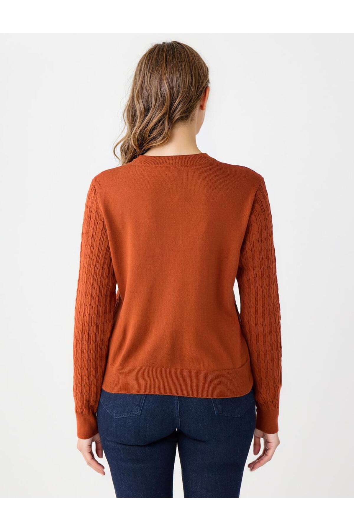 Kıremıt V Yaka Saç Örgü Desenli Triko Kazak Kıremıt V Yaka Saç Örgü Desenli Triko Kazak 5WW135956 XL