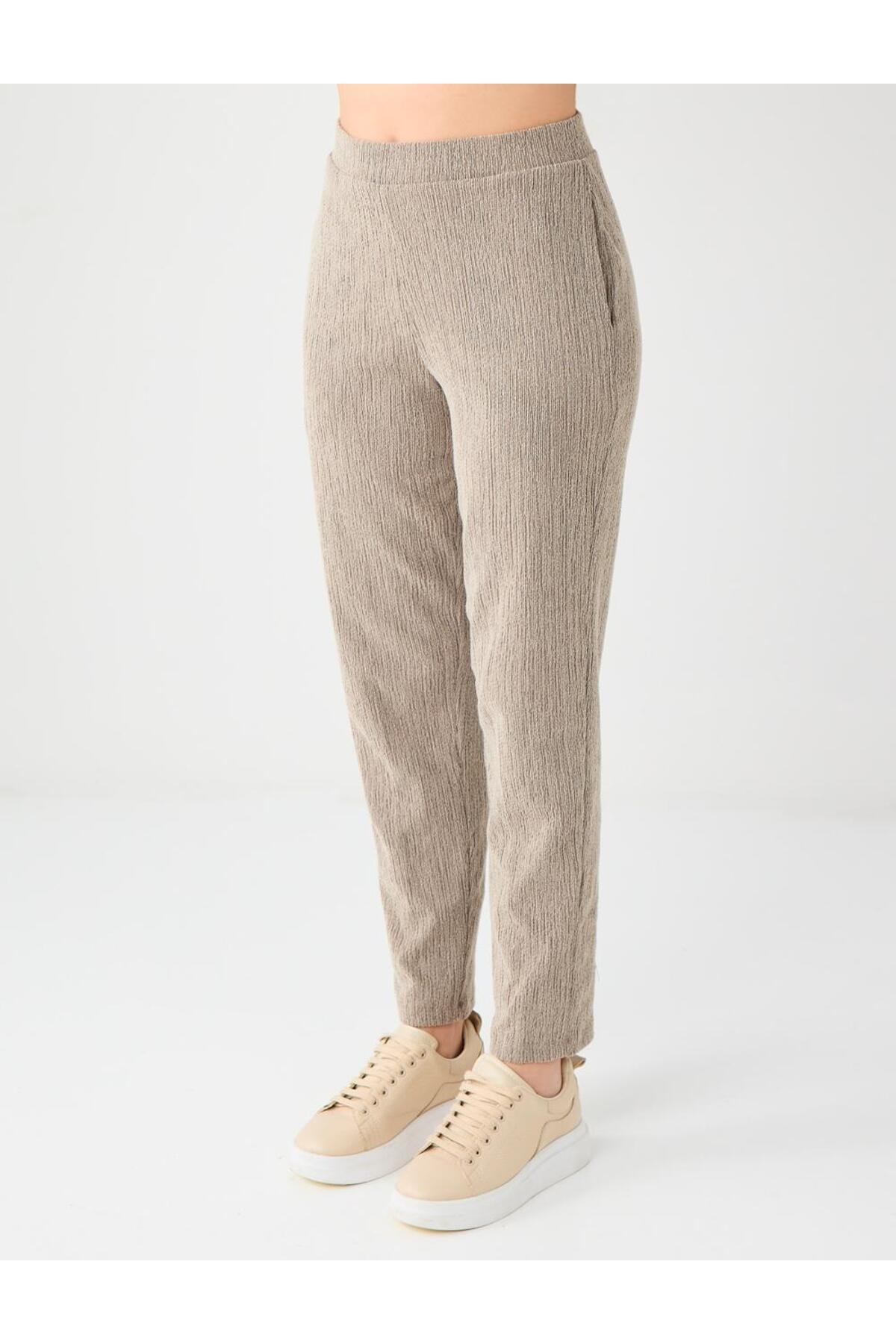 Vizon Normal Bel Normal Paça Beli Lastikli Örme Pantolon Vizon Normal Bel Normal Paça Beli Lastikli Örme Pantolon 5WW186139 XL