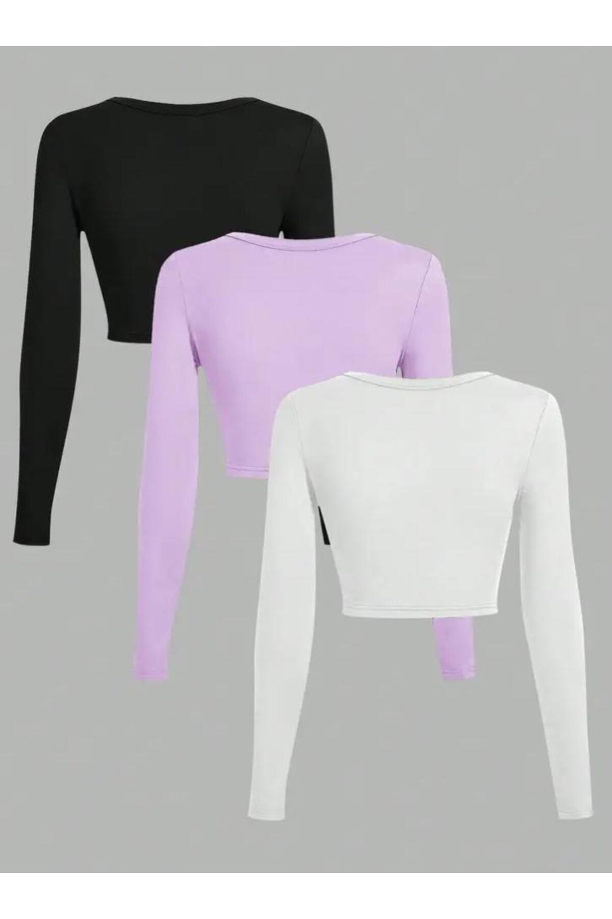 Kadın 3'Lü Paket Pamuklu Vücudu saran fitilli kumaş KARE YAKA UZUN KOLLU crop bluz Kadın 3'Lü Paket Pamuklu Vücudu saran fitilli kumaş KARE YAKA UZUN KOLLU crop bluz 1016 L