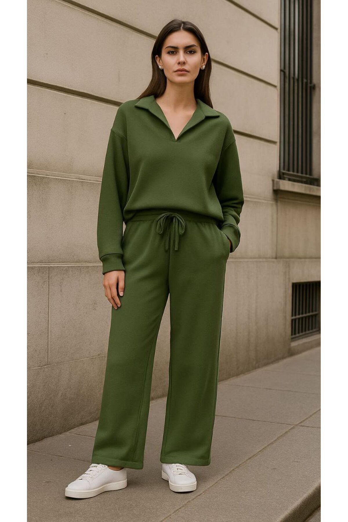 Yan Fermuarlı Modal Kumaş Bol Paça Lacivert Eşofman Takımı Yan Fermuarlı Modal Kumaş Bol Paça Lacivert Eşofman Takımı 5137 L