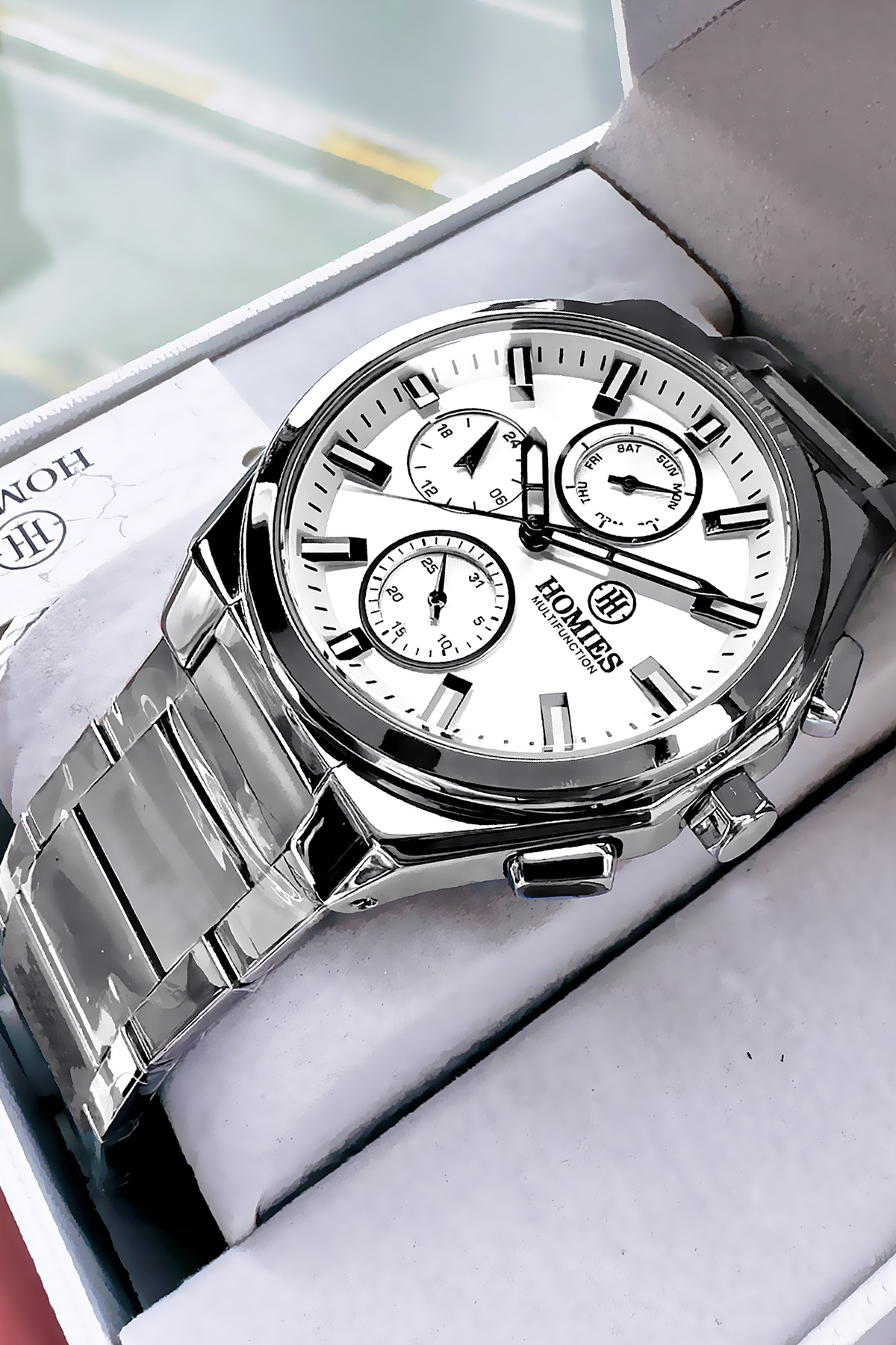 Multifonksiyon Erkek Kol Saati Gümüş Renk Çelik Kordon 3 ATM Su Geçirmez Hediye Bileklik HME2070C1 Multifonksiyon Erkek Kol Saati Gümüş Renk Çelik Kordon 3 ATM Su Geçirmez Hediye Bileklik HME2070C1 HME2072 تک سایز