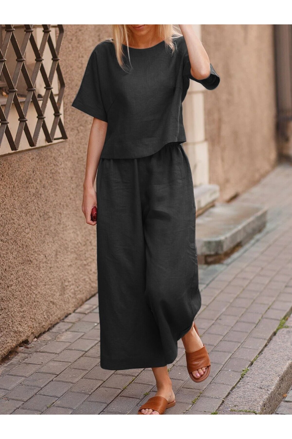 Yazlık Rahat Alt Üst Gömlek Pantolon Keten Takım Yazlık Rahat Alt Üst Gömlek Pantolon Keten Takım 151094 2XL