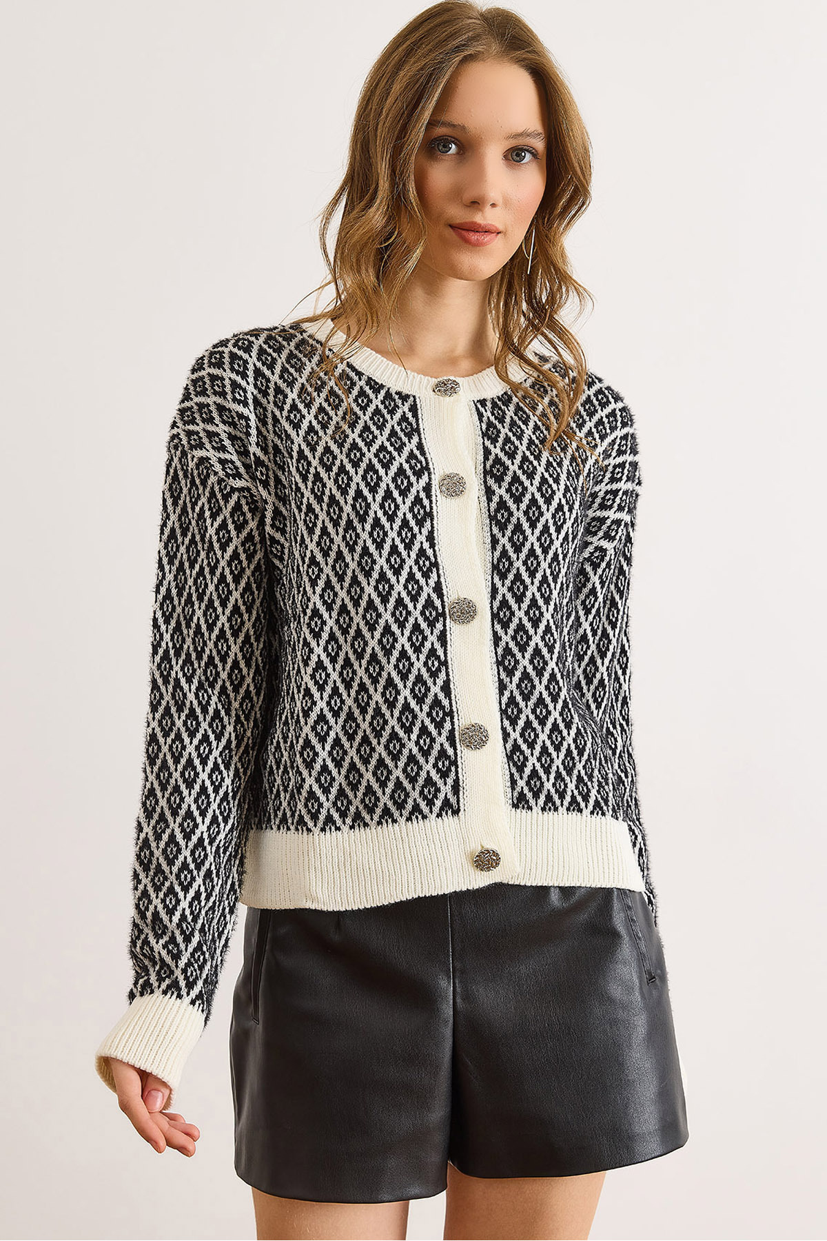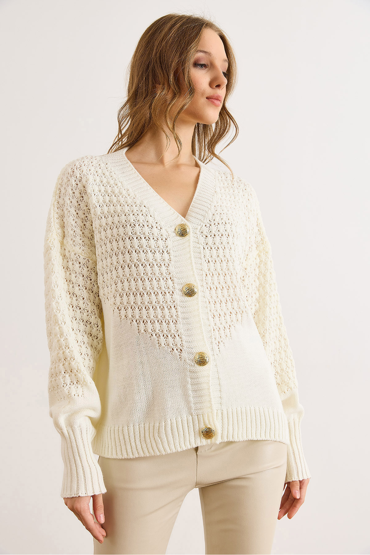 Kadın Ekru Ajur Detaylı V Yaka Triko Hırka HRK-19000436 Kadın Ekru Ajur Detaylı V Yaka Triko Hırka HRK-19000436 تک سایز