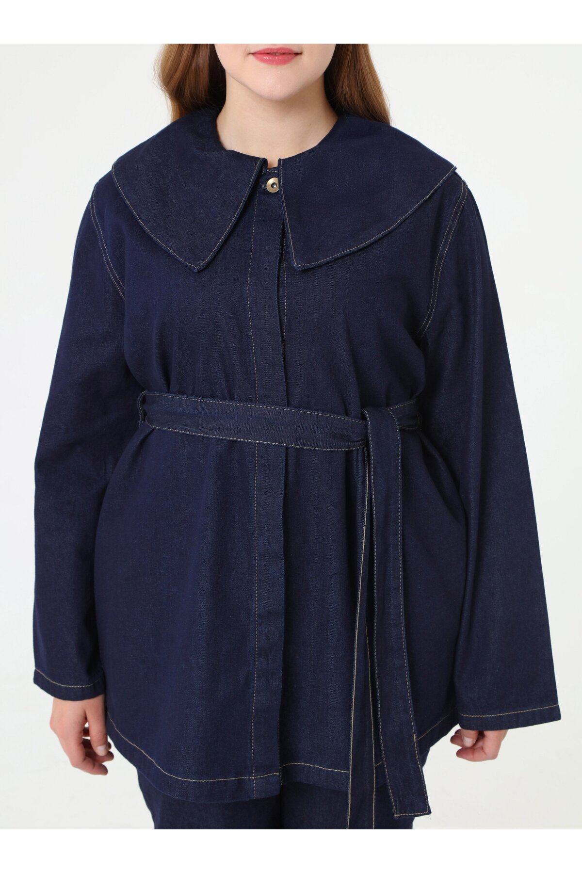 Denim Bebe Yaka Detaylı Büyük Beden Tunik - Koyu Lacivert - Denim Bebe Yaka Detaylı Büyük Beden Tunik - Koyu Lacivert - 9357684 52