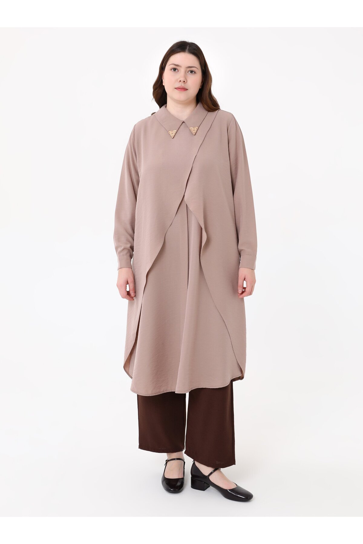 Yakası Taş Detaylı Uzun Büyük Beden Tunik - Haki - Yakası Taş Detaylı Uzun Büyük Beden Tunik - Haki - 9361344 52