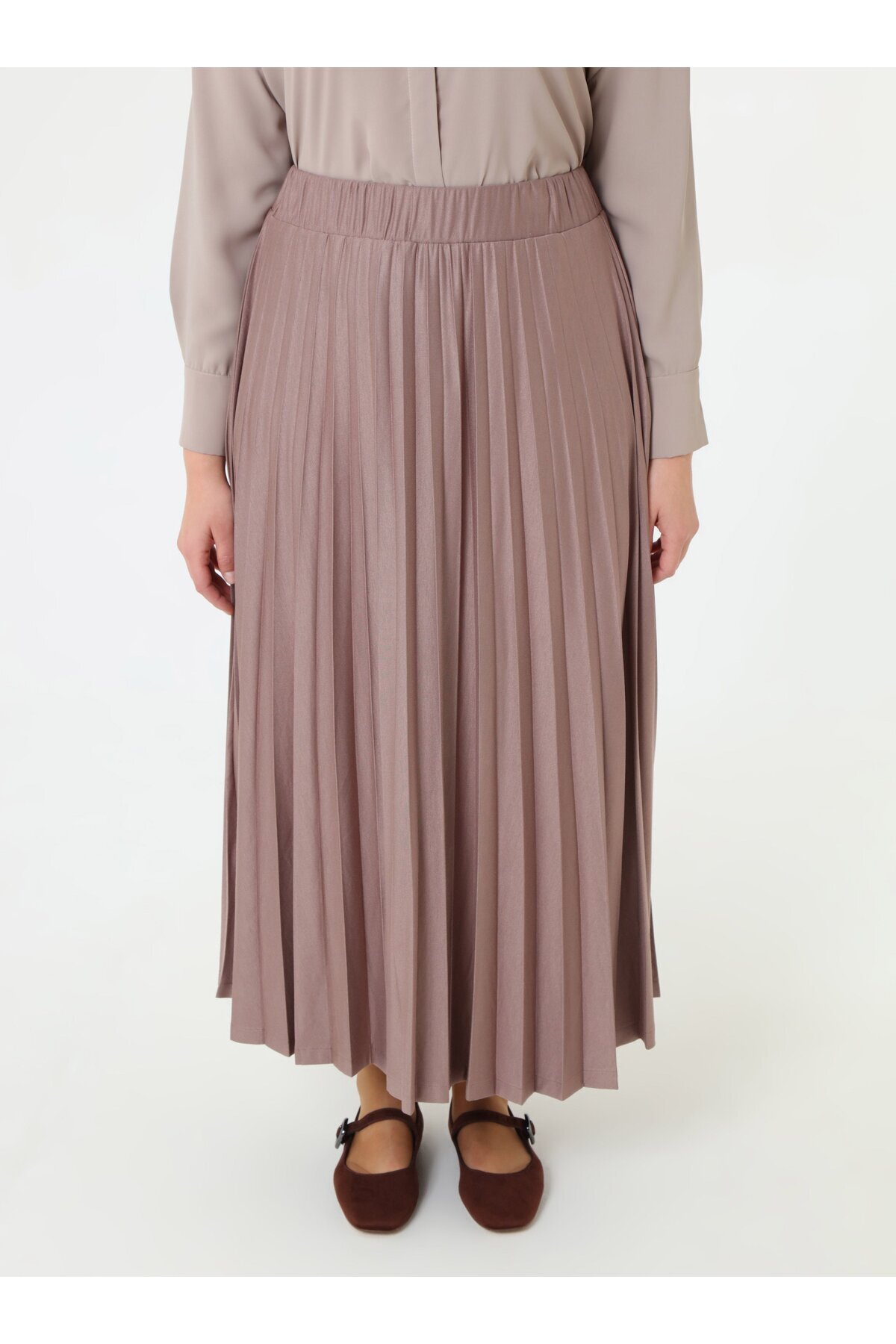 Piliseli Büyük Beden Etek - Vizon - Piliseli Büyük Beden Etek - Vizon - 9361302 52