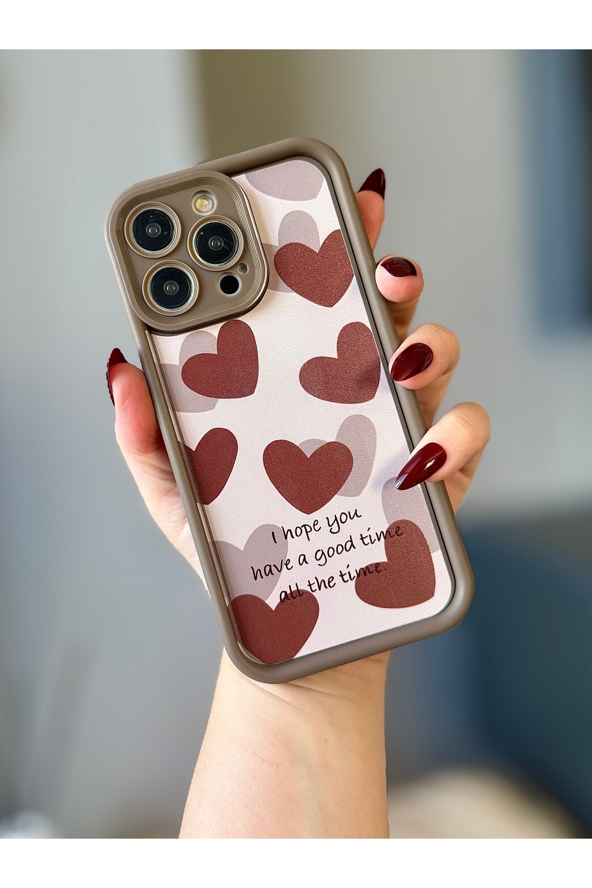 IPHONE 13 PRO MAX KAHVERENGİ KALP DESENLİ KILIF IPHONE 13 PRO MAX KAHVERENGİ KALP DESENLİ KILIF cl260 تک سایز