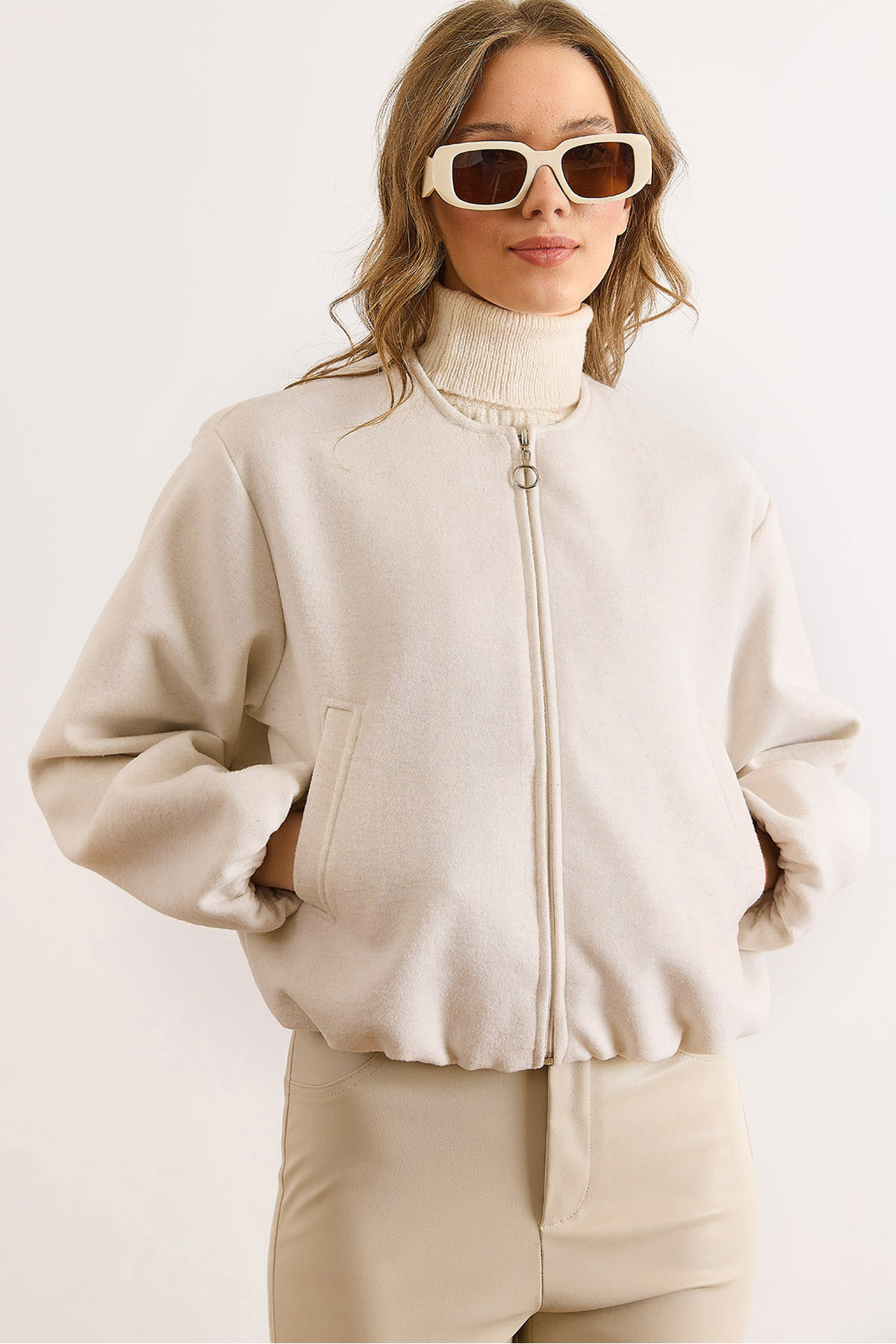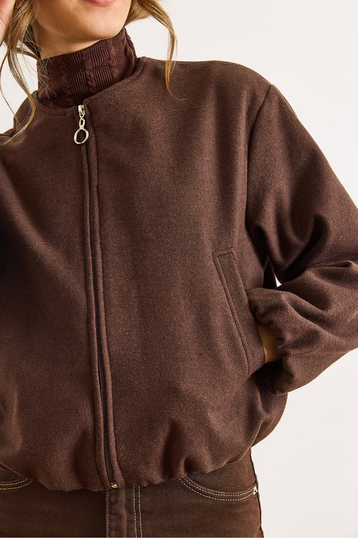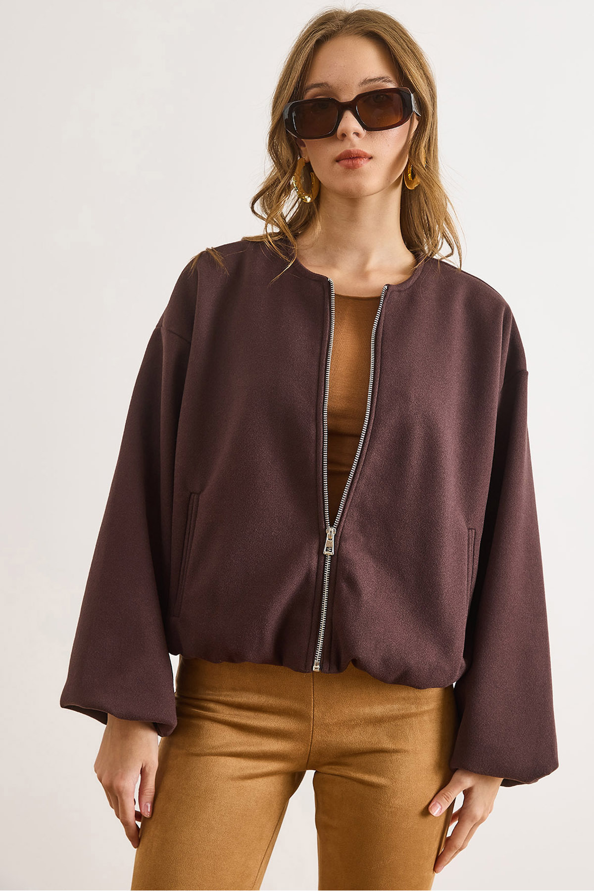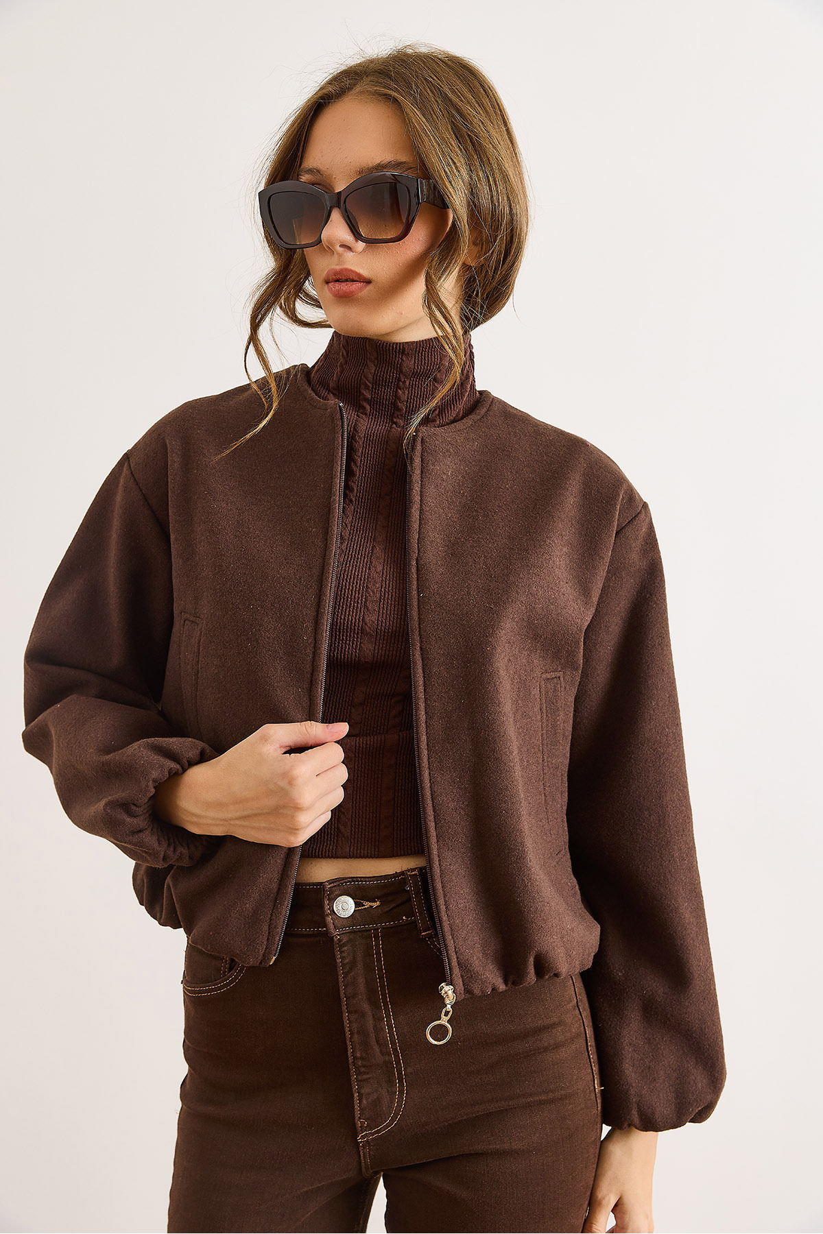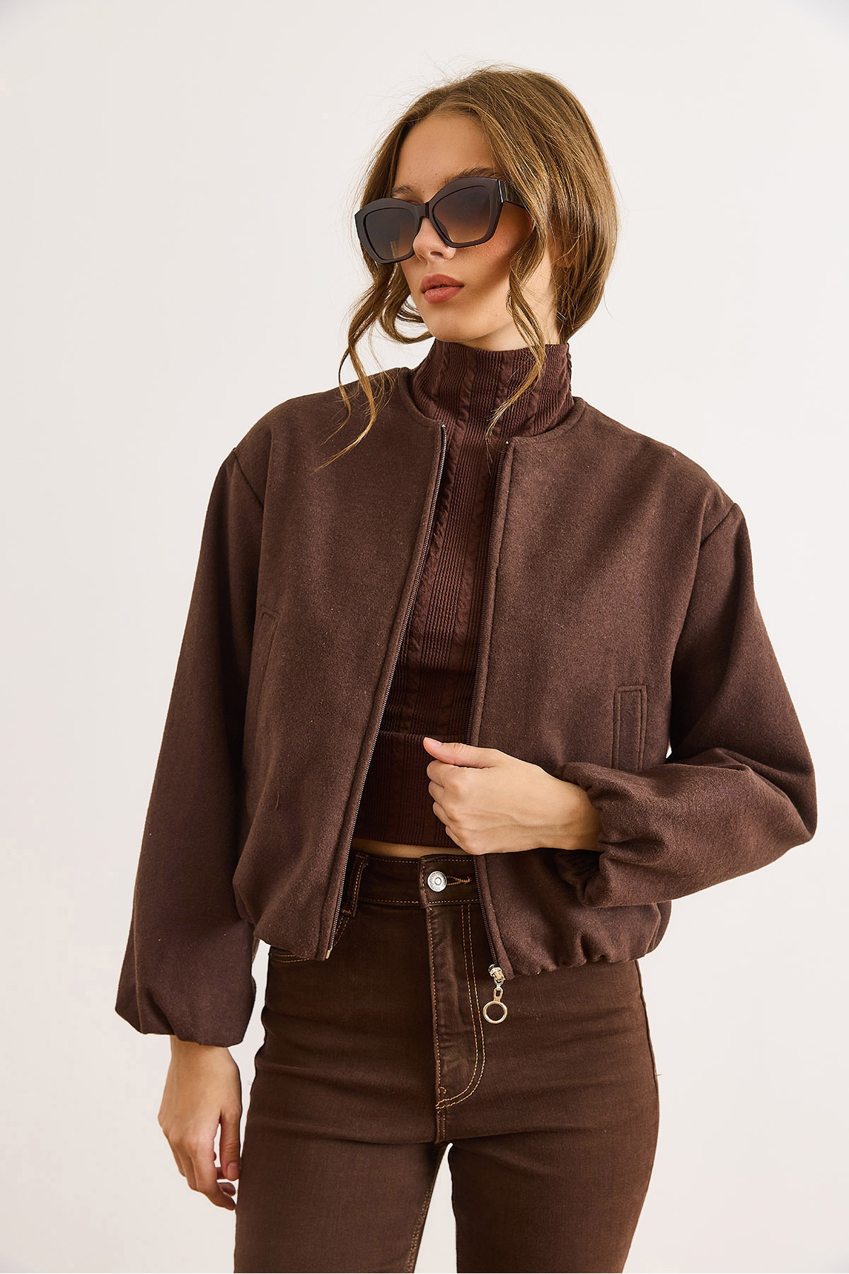 Kadın Kahverengi Cepli Astarlı Bisiklet Yaka Crop Kaşe Ceket CKT-19000485 Kadın Kahverengi Cepli Astarlı Bisiklet Yaka Crop Kaşe Ceket CKT-19000485 XL