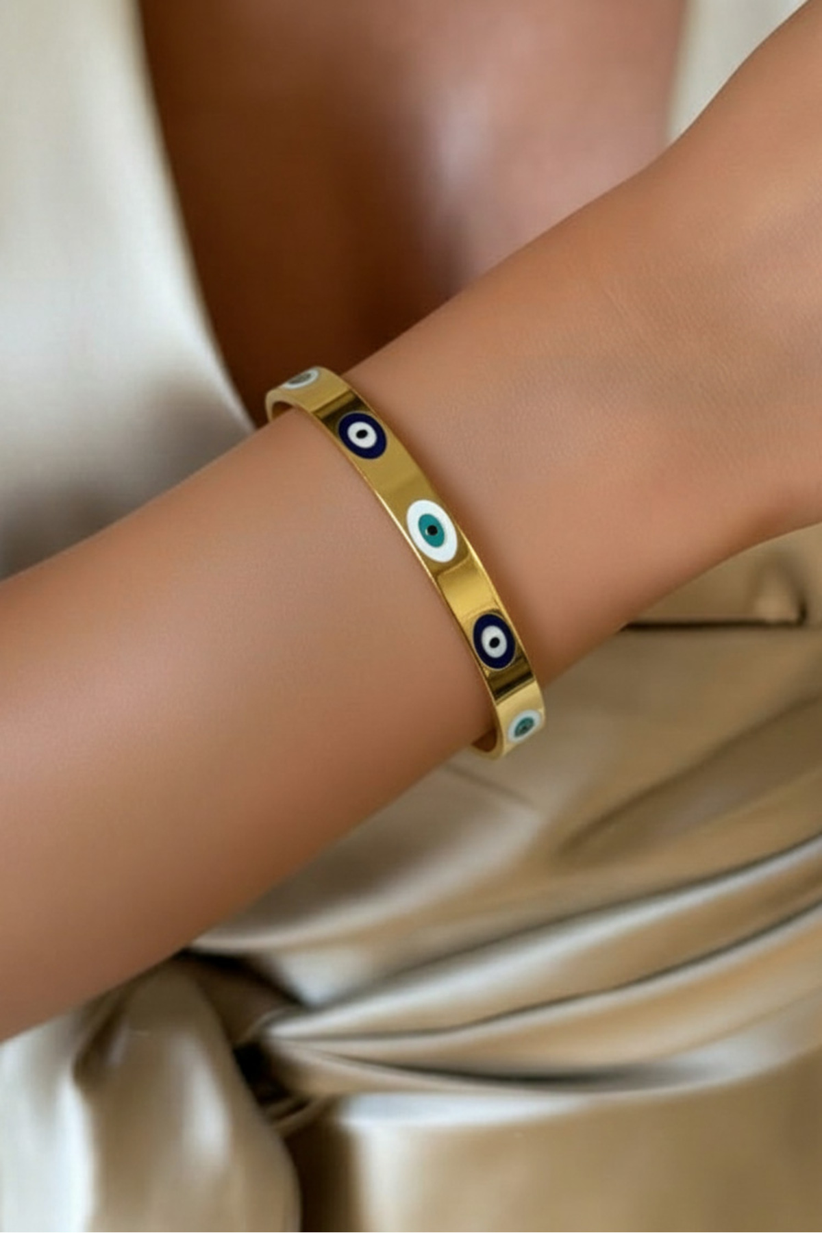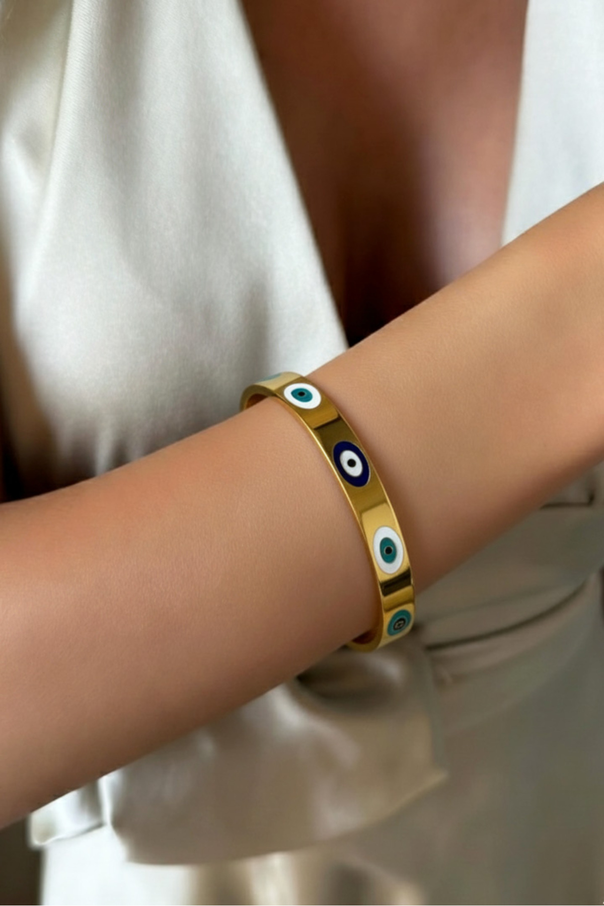 Çelik Nazarlı Kadın Kelepçe Bileklik – 18 Cm Altın Renk Bileklik | Kararmaz Kadın Takı Çelik Nazarlı Kadın Kelepçe Bileklik – 18 Cm Altın Renk Bileklik | Kararmaz Kadın Takı CRSTBLK0007 18 cm