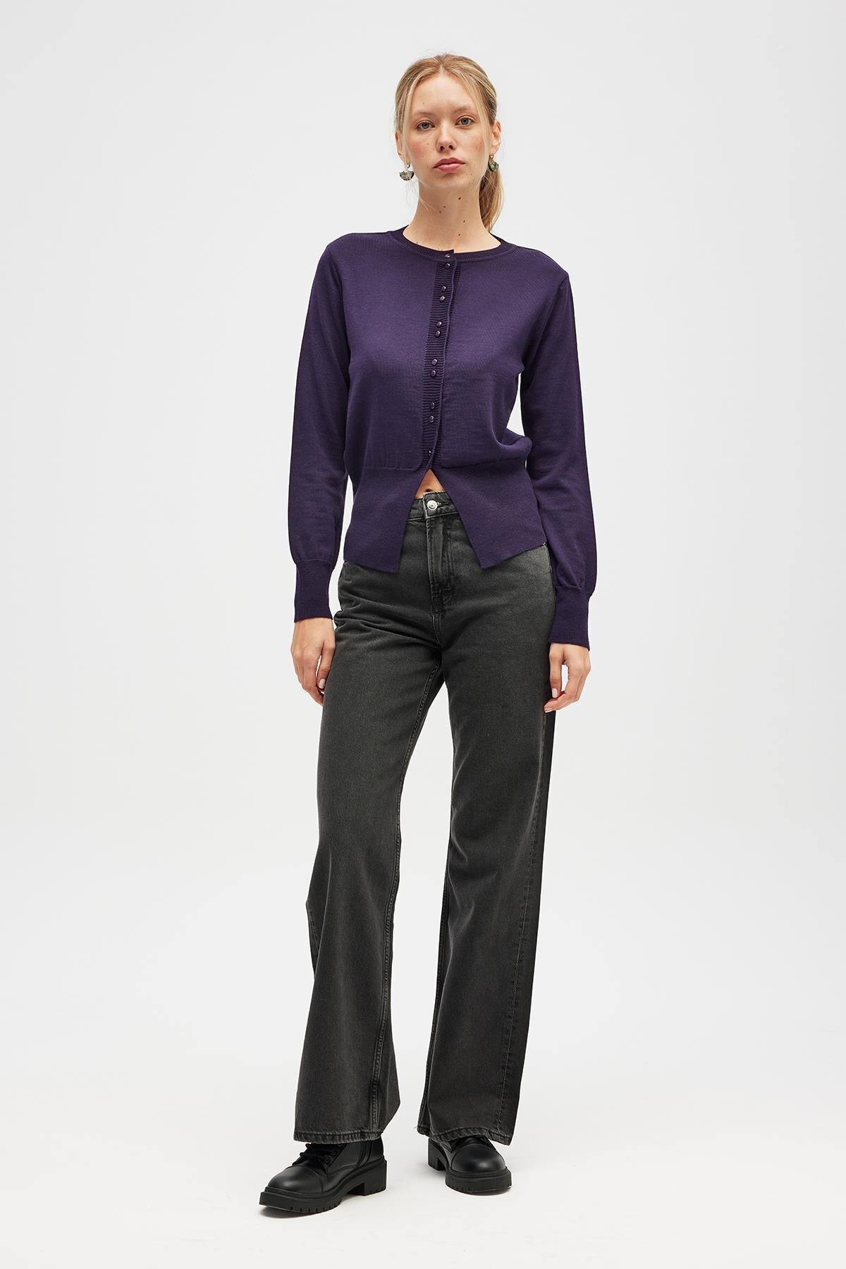 Ripley Çelik Örgü, Düğmeli Kadın Triko Hırka - Koyu Mor Ripley Çelik Örgü, Düğmeli Kadın Triko Hırka - Koyu Mor 13103007 XL