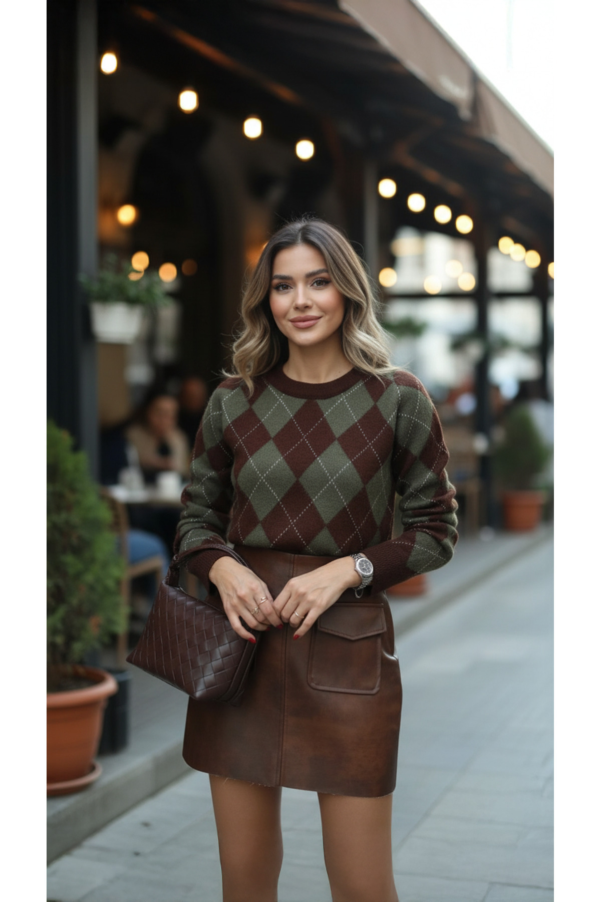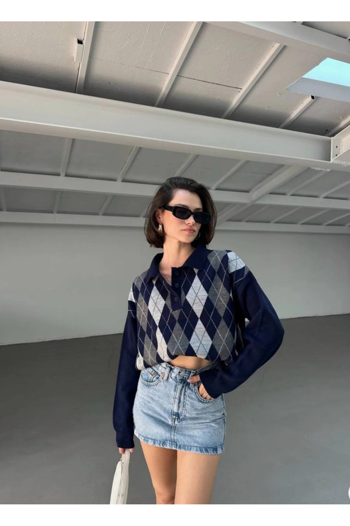 Kadın Baklava Desenli Polo Yaka Triko Kazak Kadın Baklava Desenli Polo Yaka Triko Kazak SMT001 Standart