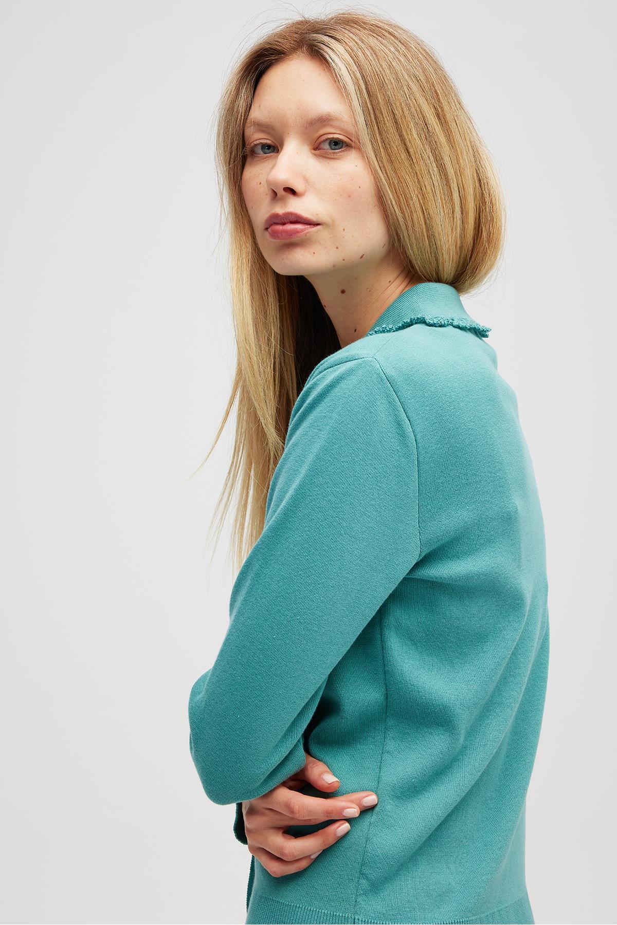Laila, Düz Örgü, Polo Yaka, Kadın Triko Hırka - Okaliptus Yeşil Laila, Düz Örgü, Polo Yaka, Kadın Triko Hırka - Okaliptus Yeşil 13103004 XL