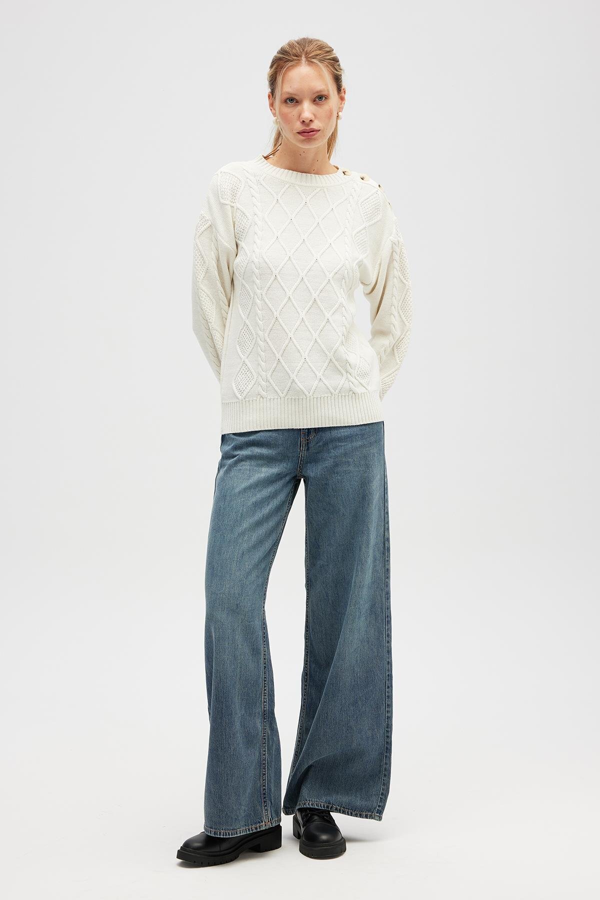 Daphne Saç Örgülü Omzu Düğmeli, Kadın Triko Kazak - Ekru Daphne Saç Örgülü Omzu Düğmeli, Kadın Triko Kazak - Ekru 13102008 XL