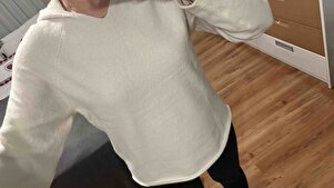 Uzun Kollu Kapüşonlu Triko Beyaz Kazak Uzun Kollu Kapüşonlu Triko Beyaz Kazak 011261002551315 2XL