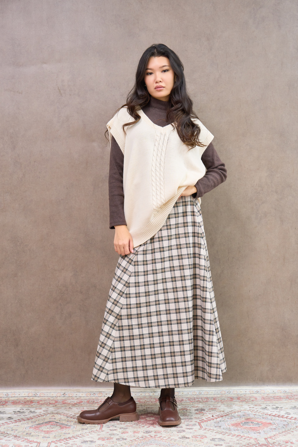 Kahve Kloş Dört Parçalı Ekose Etek Kahve Kloş Dört Parçalı Ekose Etek KCGM13698 L/XL