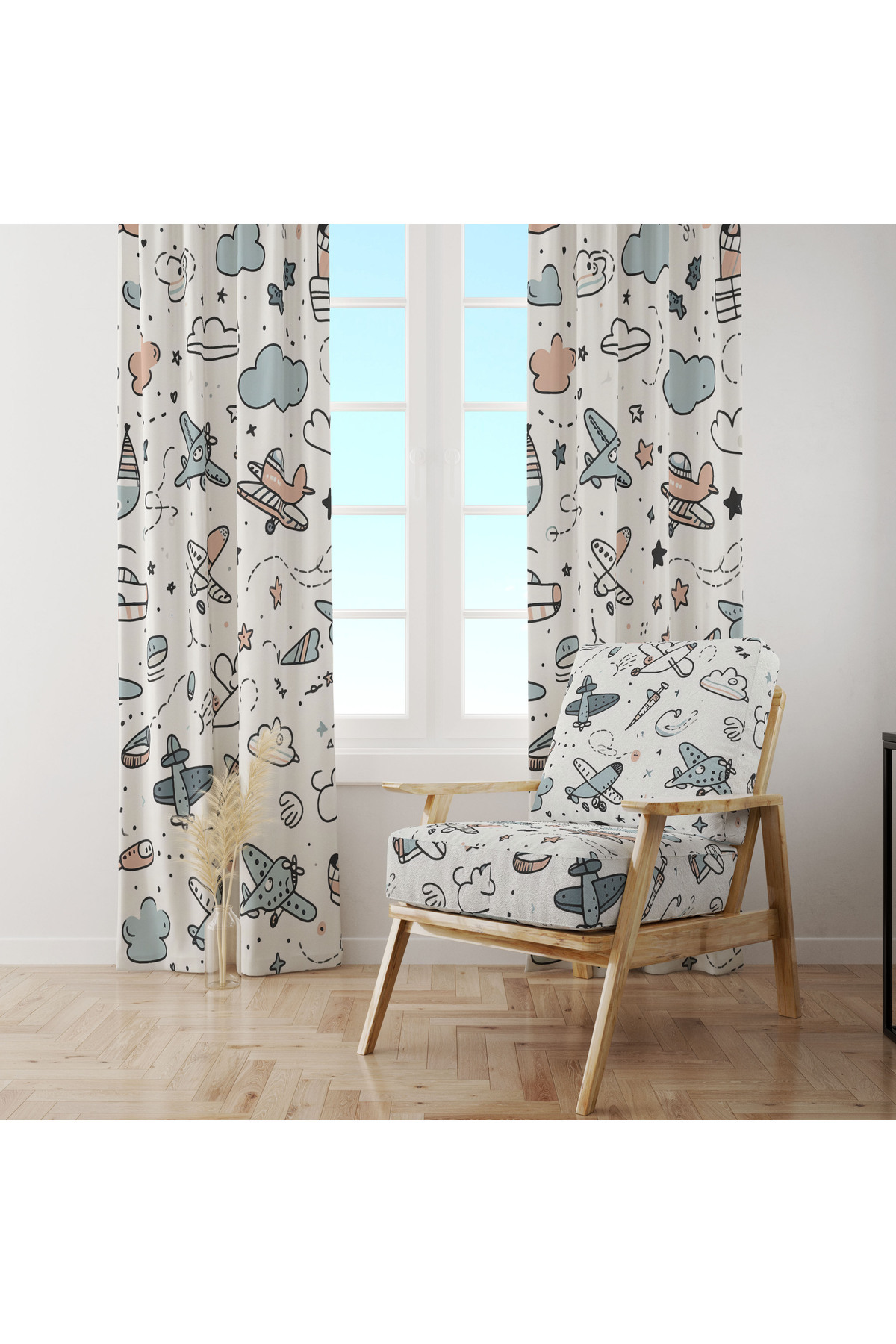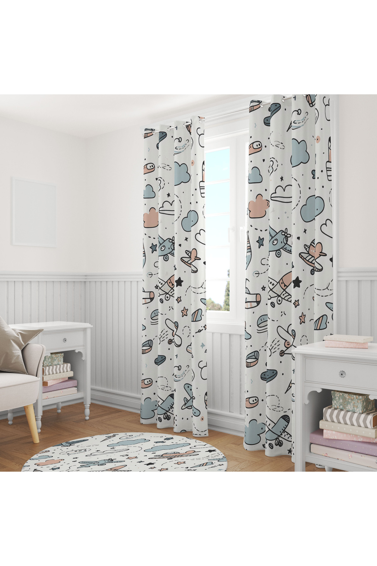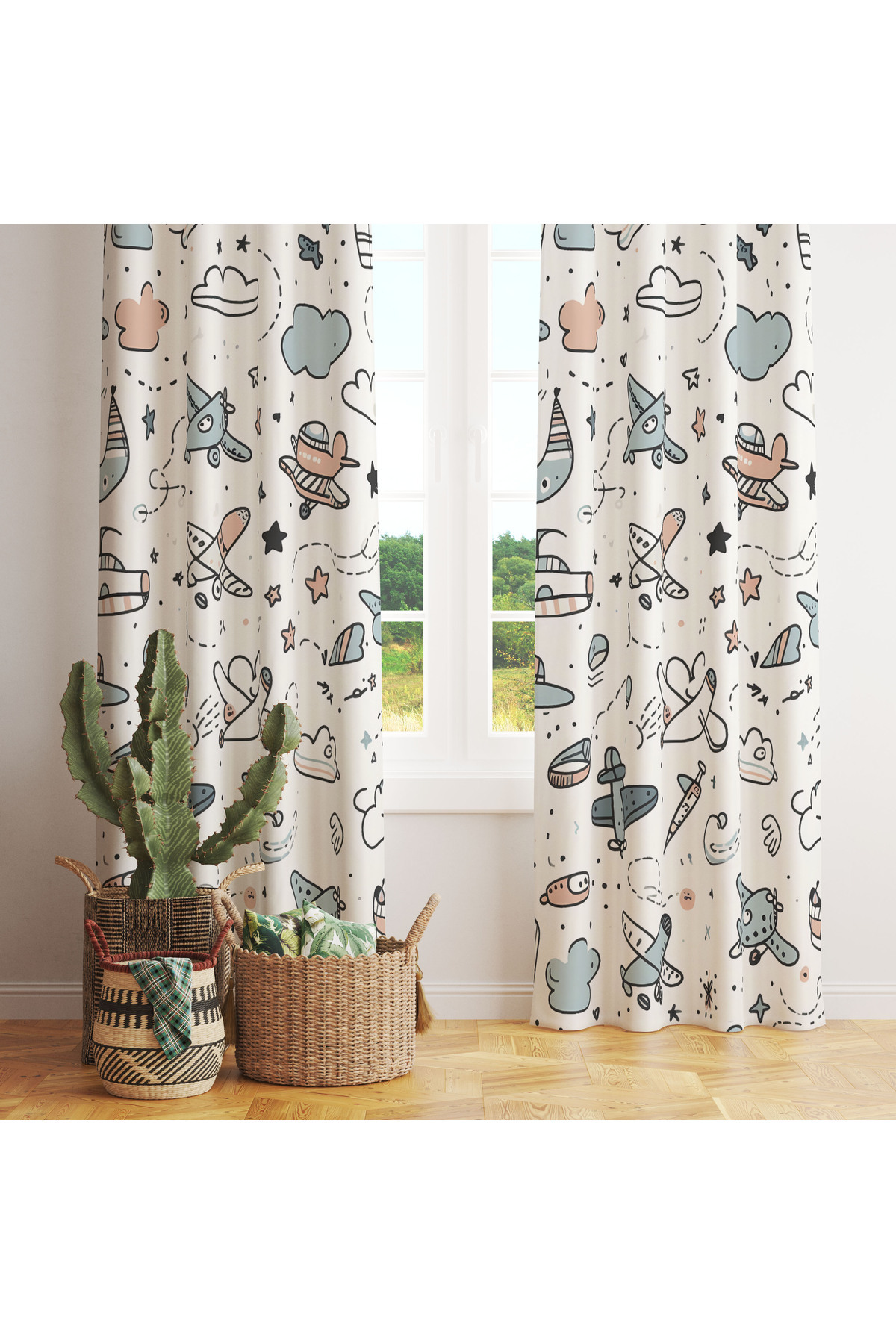 Beyaz Pastel Uçak Desenli Çocuk 140x260 Tek Kanat Fon Perde Beyaz Pastel Uçak Desenli Çocuk 140x260 Tek Kanat Fon Perde LHCURTAINS001 140 x 260