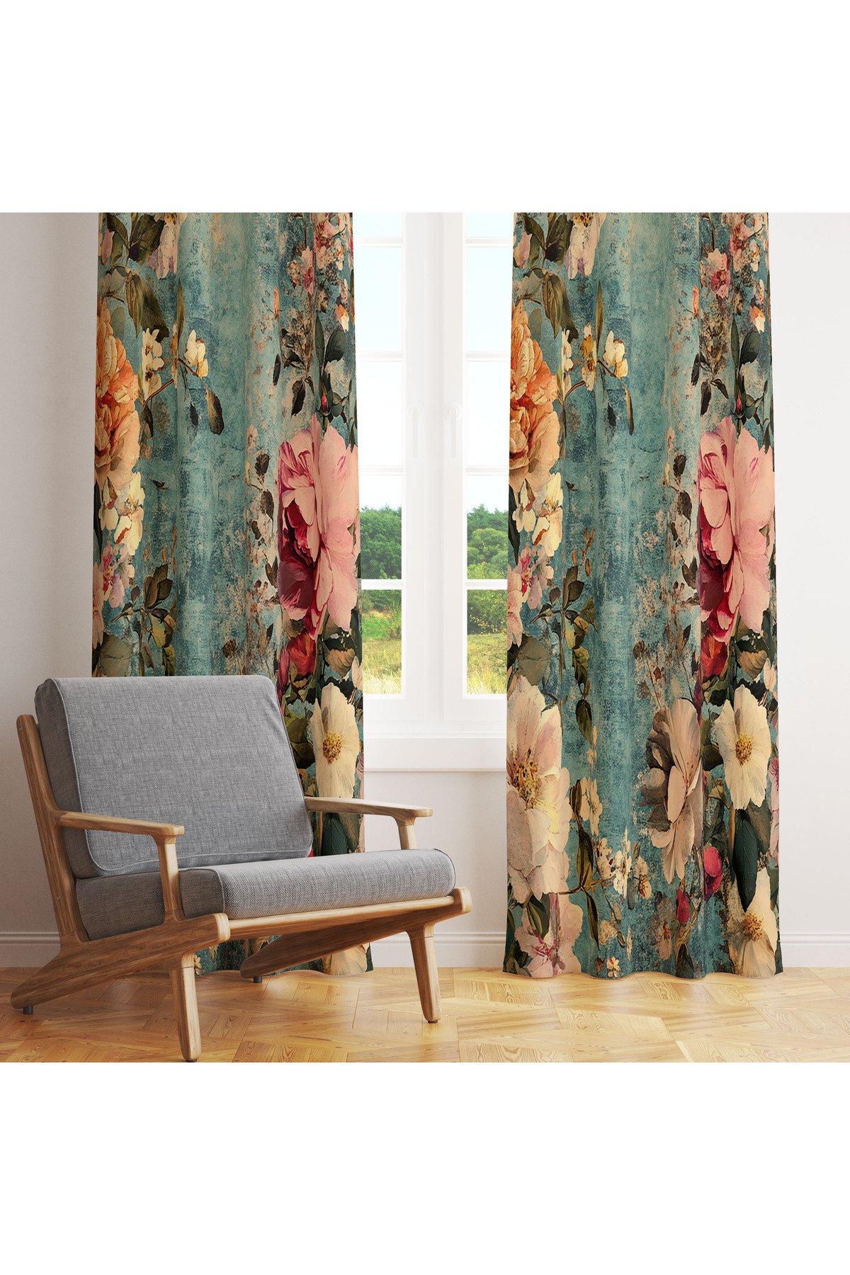 Rustik Ahşap Çerçeveli Çiçekli Vintage Perde – Doğal ve Eski Tip Dekorasyon Rustik Ahşap Çerçeveli Çiçekli Vintage Perde – Doğal ve Eski Tip Dekorasyon LHCURTAINS001 140 x 260