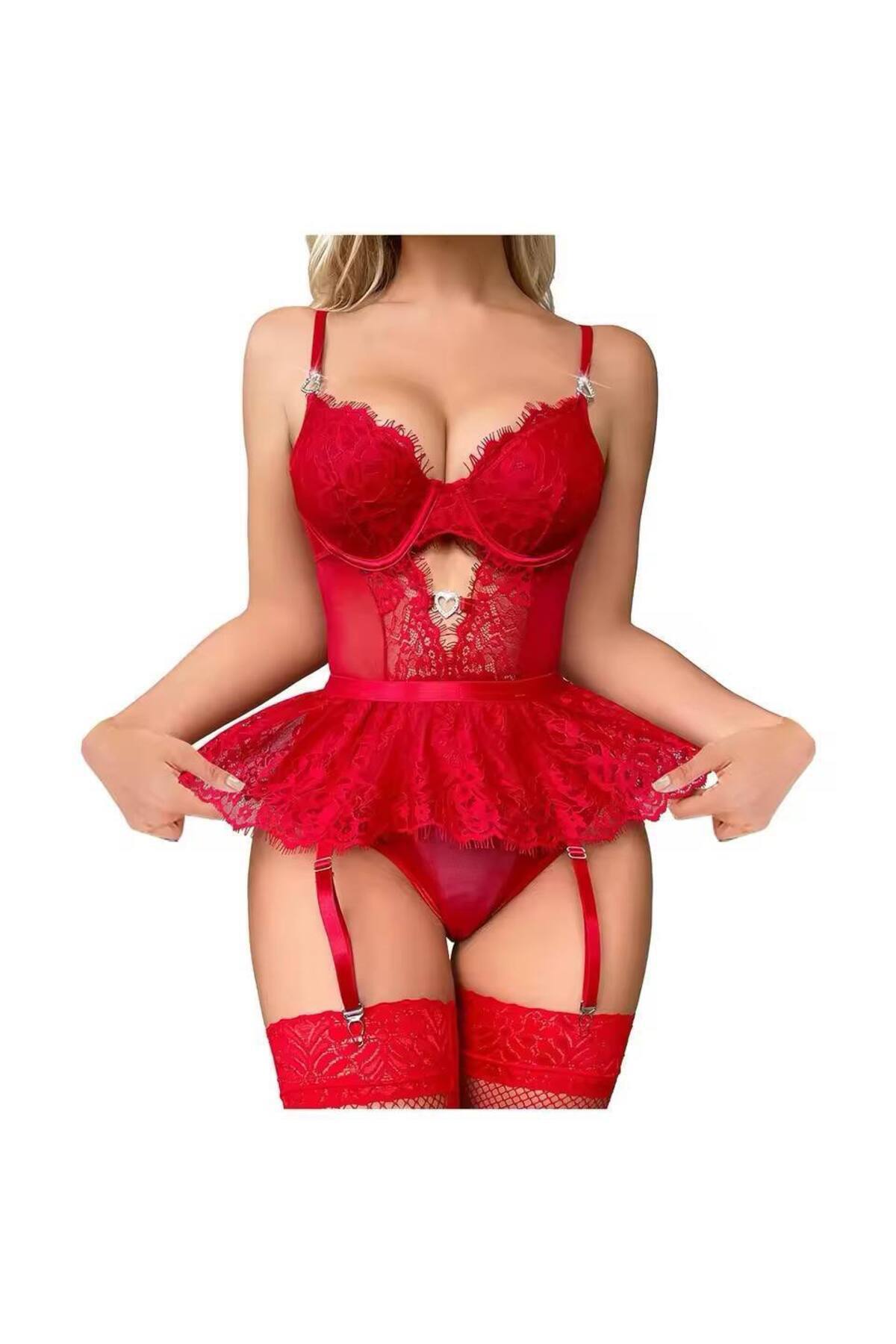 Kadın File Çoraplı 3 Parça Jartiyerli Seksi Fantezi Gecelik Kadın File Çoraplı 3 Parça Jartiyerli Seksi Fantezi Gecelik MG90 L/XL