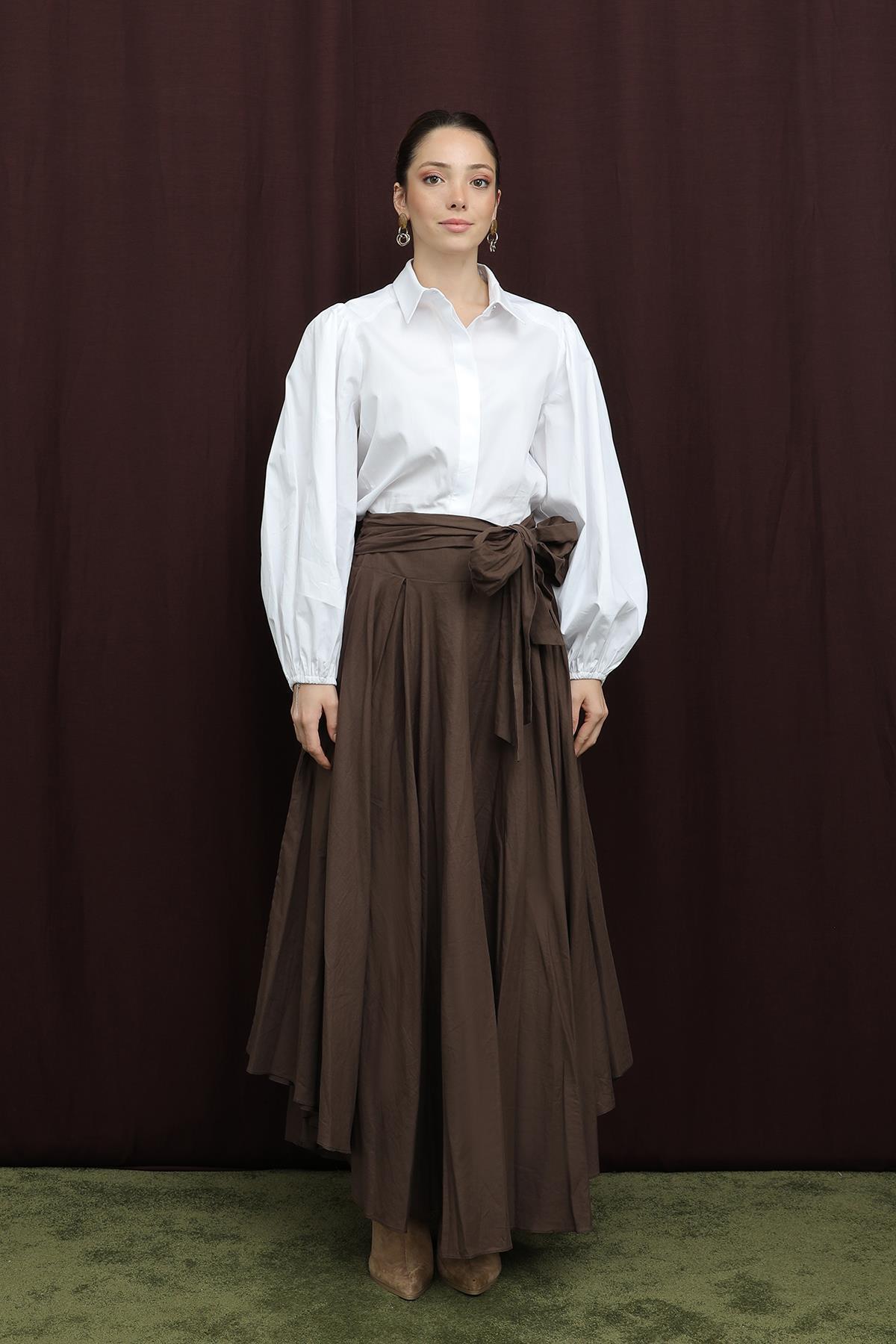 Kadın Bel Kuşaklı Asimetrik Kesim Etek - 32420ETK - BROWN Kadın Bel Kuşaklı Asimetrik Kesim Etek - 32420ETK - BROWN 25W-32420ETK L
