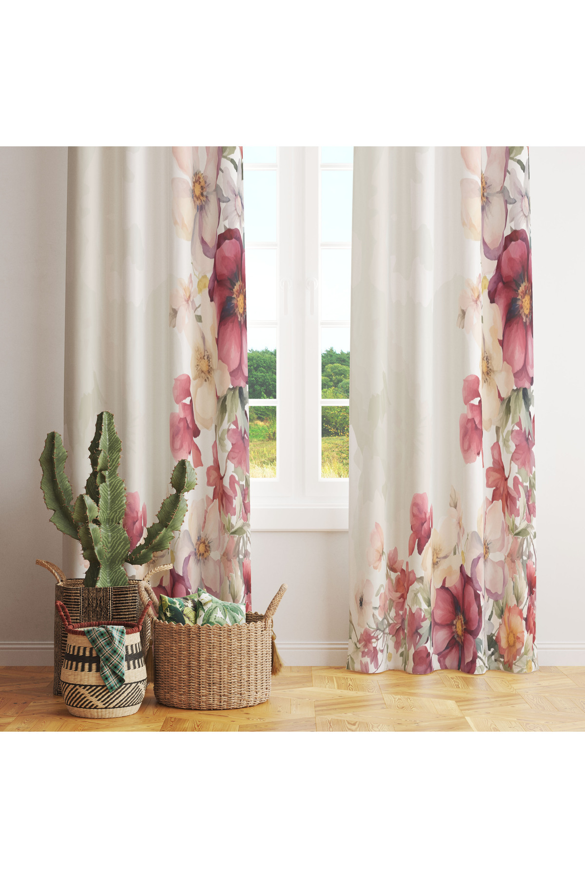 Krem Zemin Üzerinde Renkli Çiçek Desenli Tek Kanat Fon Perde 140x260 cm Krem Zemin Üzerinde Renkli Çiçek Desenli Tek Kanat Fon Perde 140x260 cm LHCURTAINS001 140 x 260
