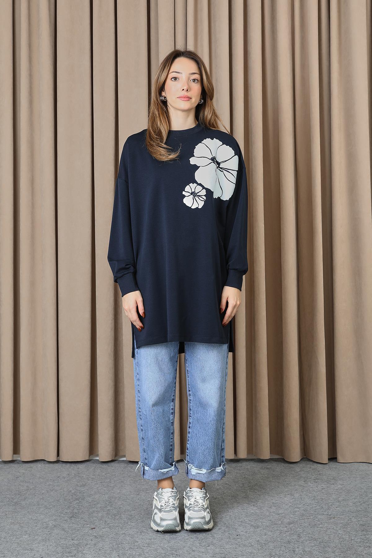 Kadın Omzu Çiçek Baskılı Tunik - 10743TUN - NAVY Kadın Omzu Çiçek Baskılı Tunik - 10743TUN - NAVY 25W-10743TUN L/XL