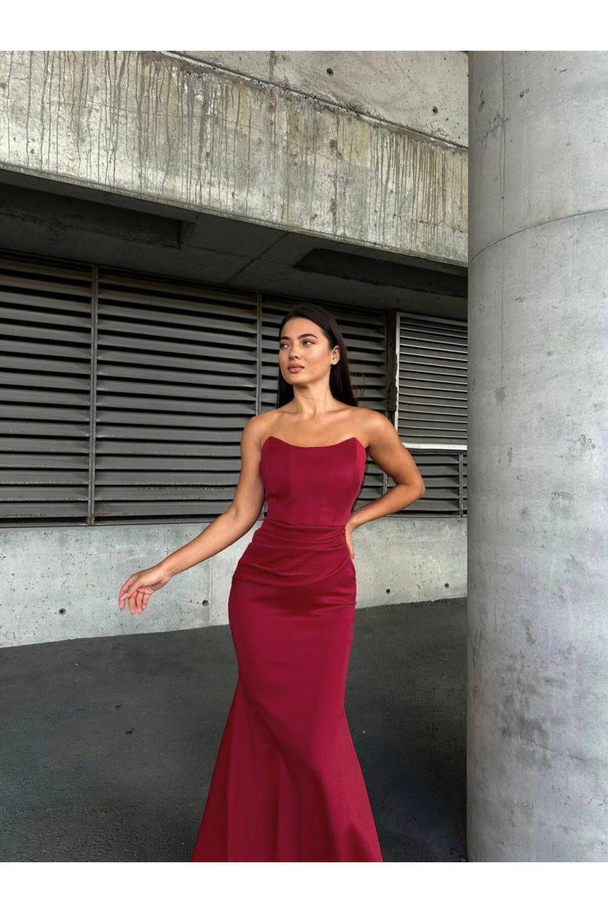Scuba Straplez Uzun Elbise BORDO 583301 Scuba Straplez Uzun Elbise BORDO 583301 XL